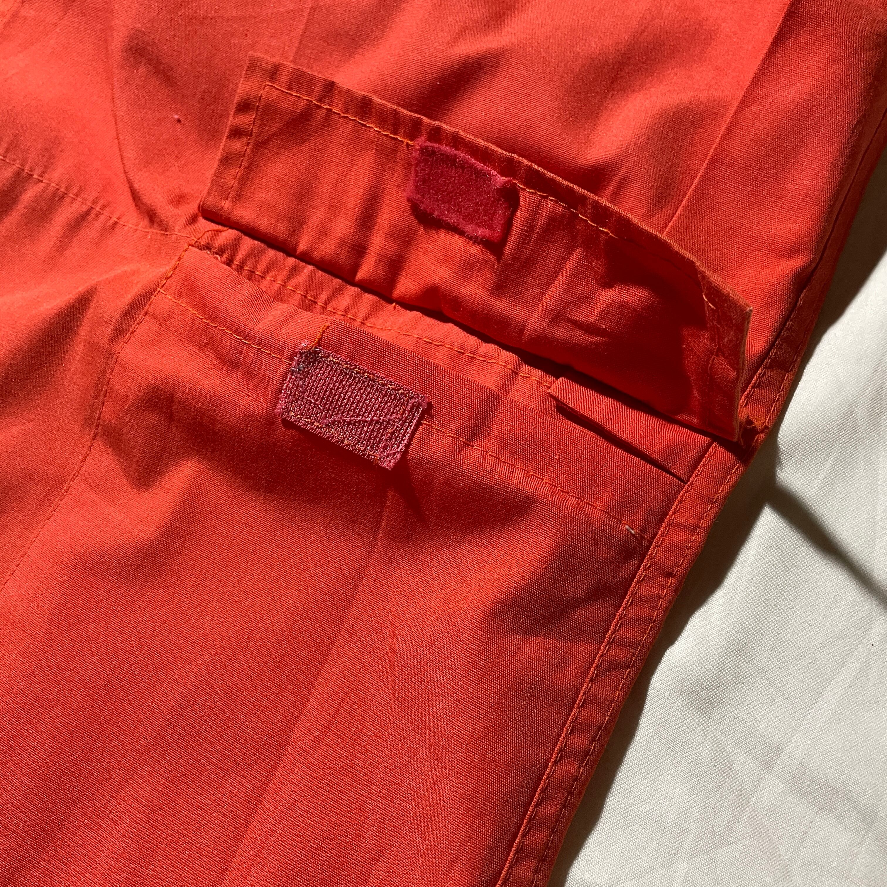 発色の良いオレンジのカラーリング。裾口はドローコードで絞れるようになっています。非常にセンス良しな一着です。