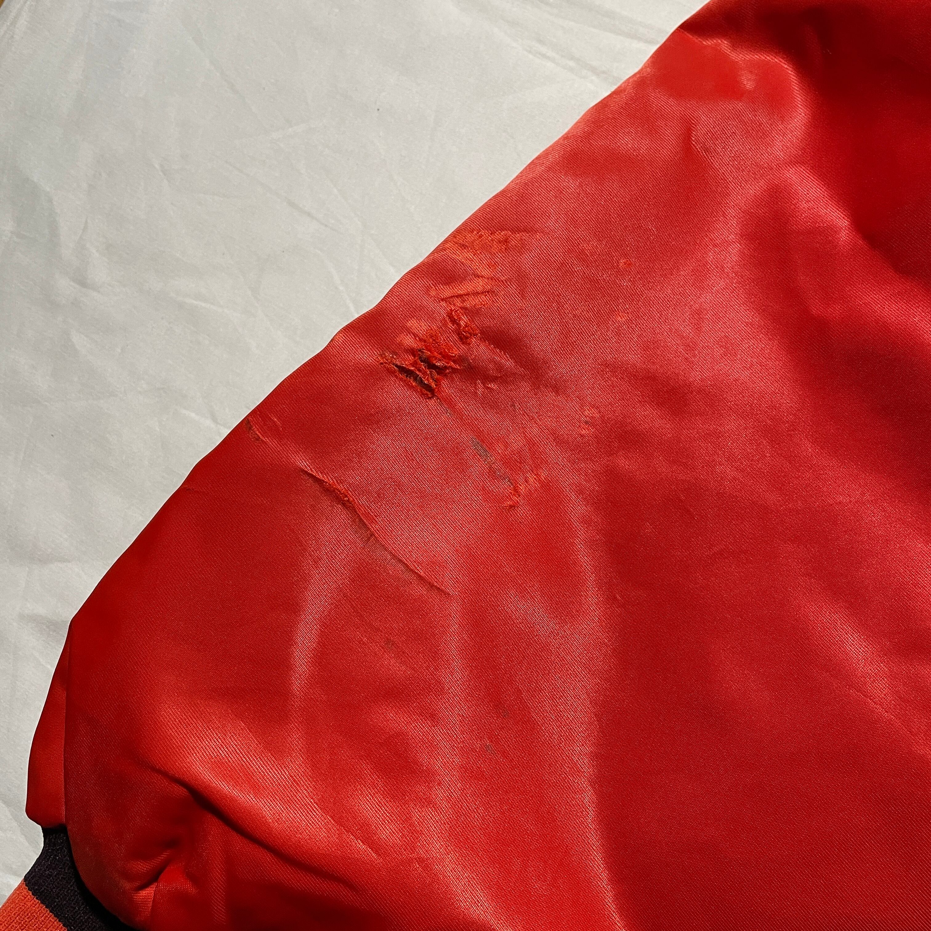 フロント、右袖口辺りにかき傷でできた穴あり。着用していて広がる事は無いです。それ以外は汚れ等無く状態良好です。古着慣れされていれば問題無く着用可能なコンディションです。