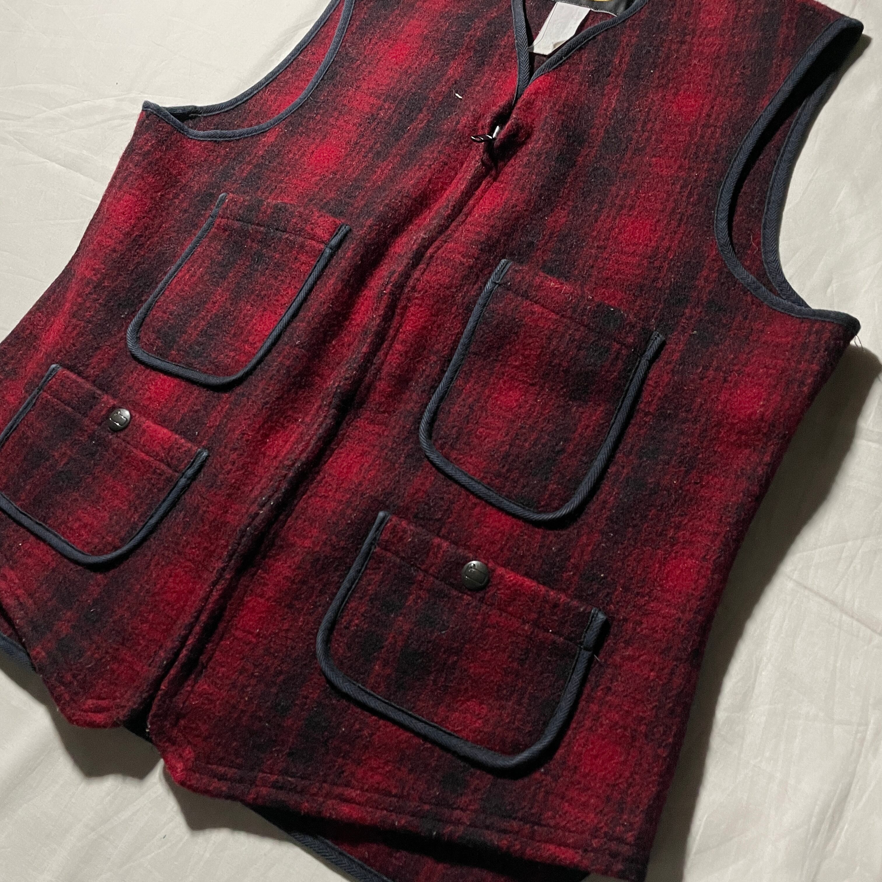90s woolrich ウールベスト オンブレチェック シンチバック