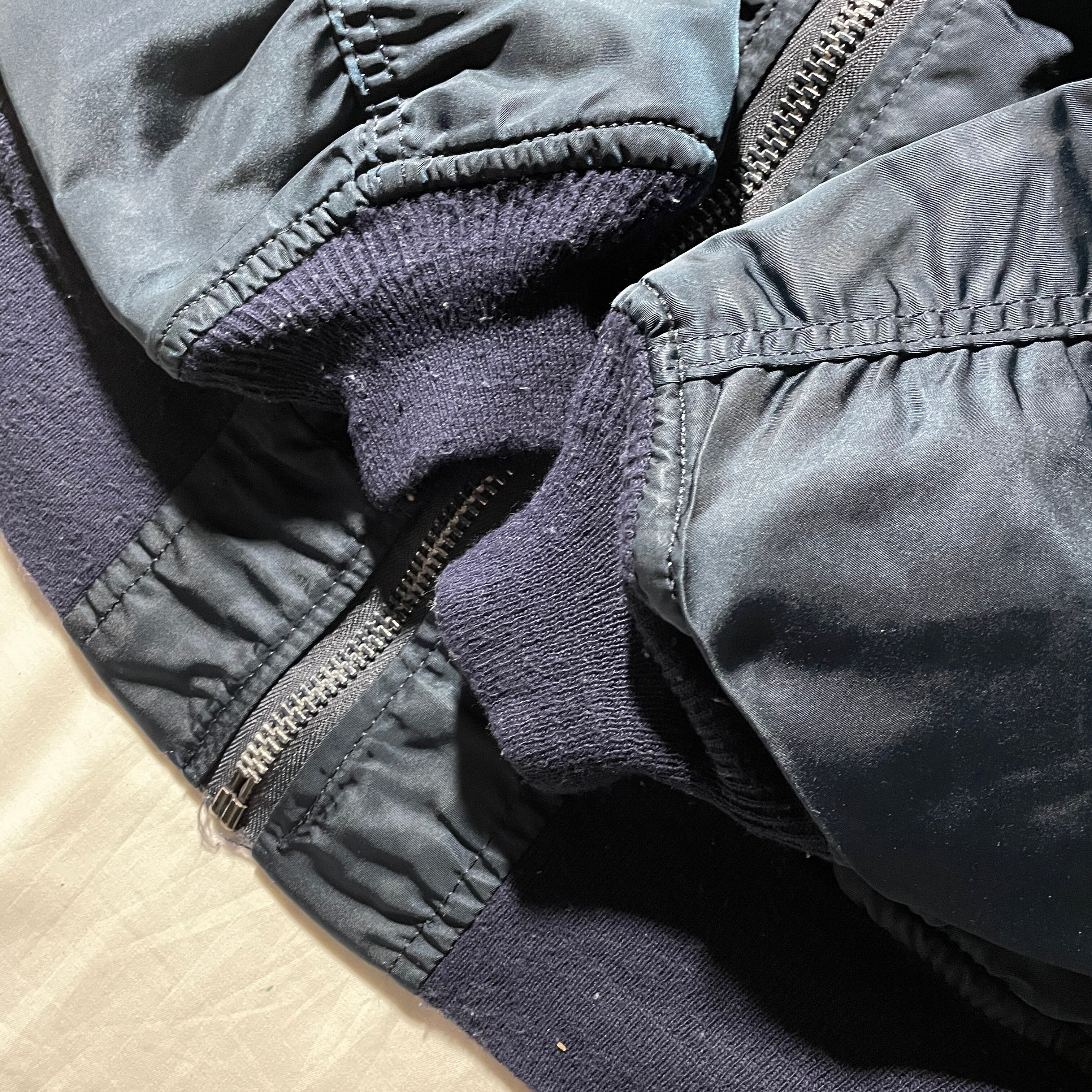 濃いめのネイビーカラーはミリタリー感強めのMA-1もスタイリッシュに感じます。スタイルを選ばず着用できるかと思います。