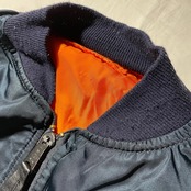 濃いめのネイビーカラーはミリタリー感強めのMA-1もスタイリッシュに感じます。スタイルを選ばず着用できるかと思います。