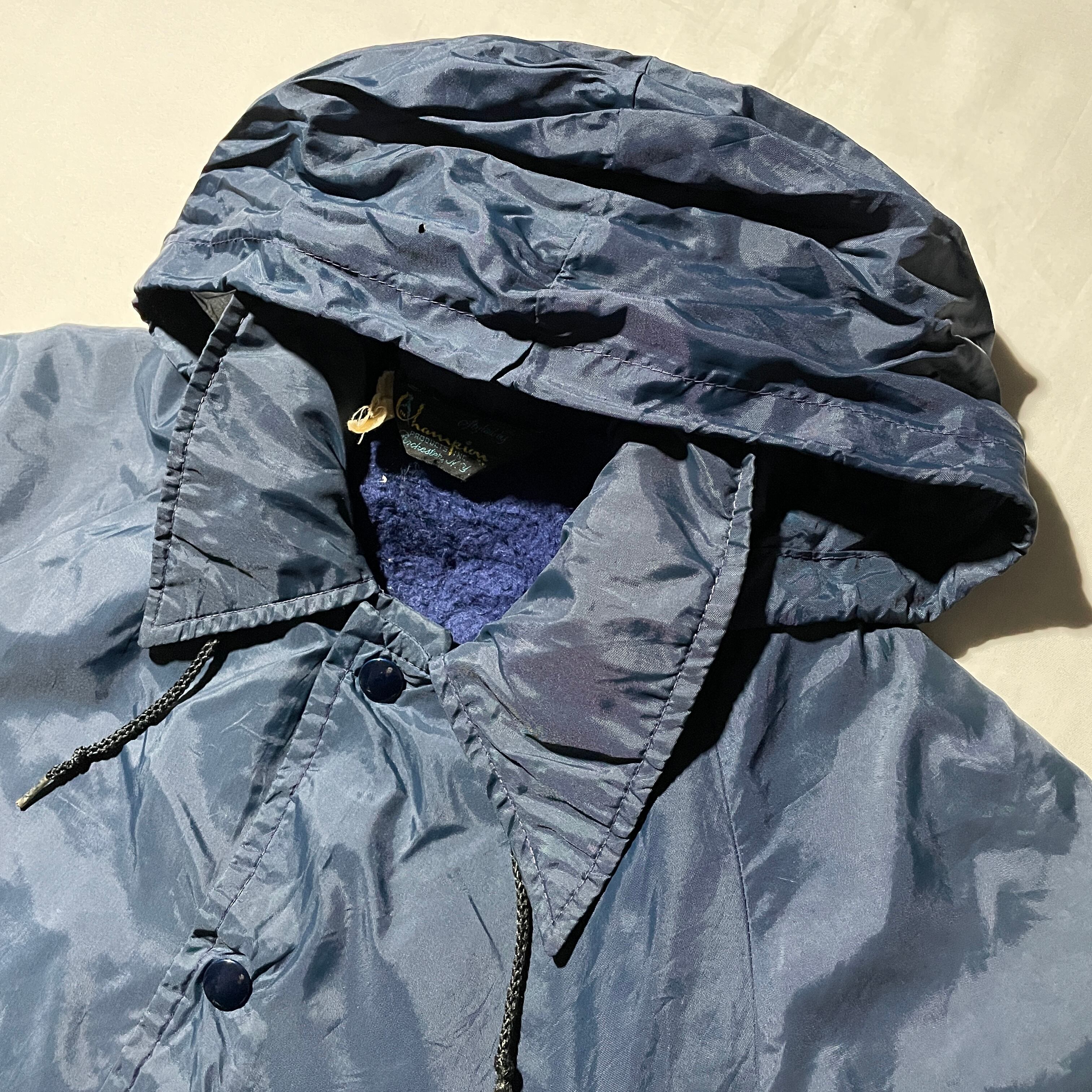60s頃のchampion。ナイロン地のコーチジャケットでライニングはフリース張りになってます。フードはボタン留めで収納可能。