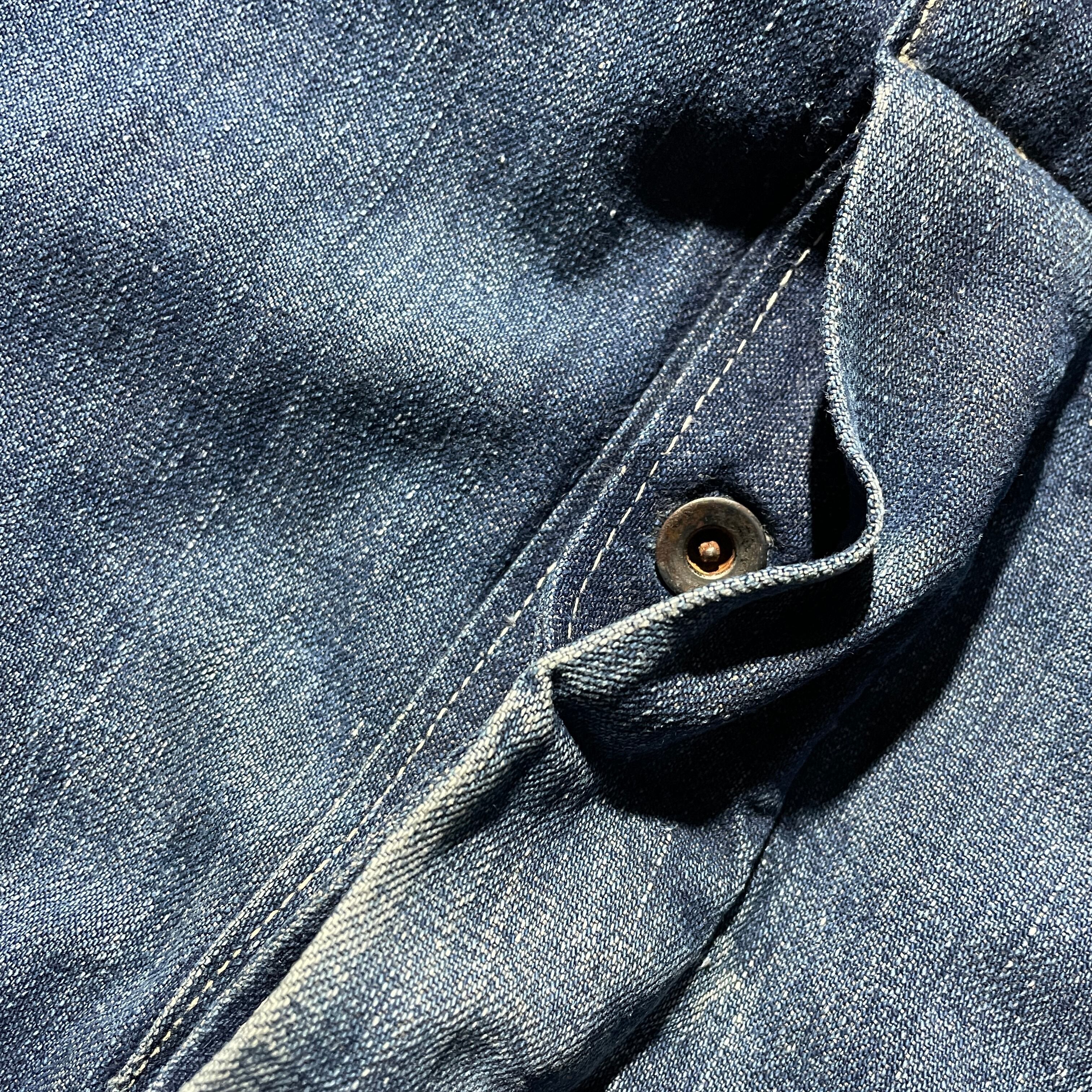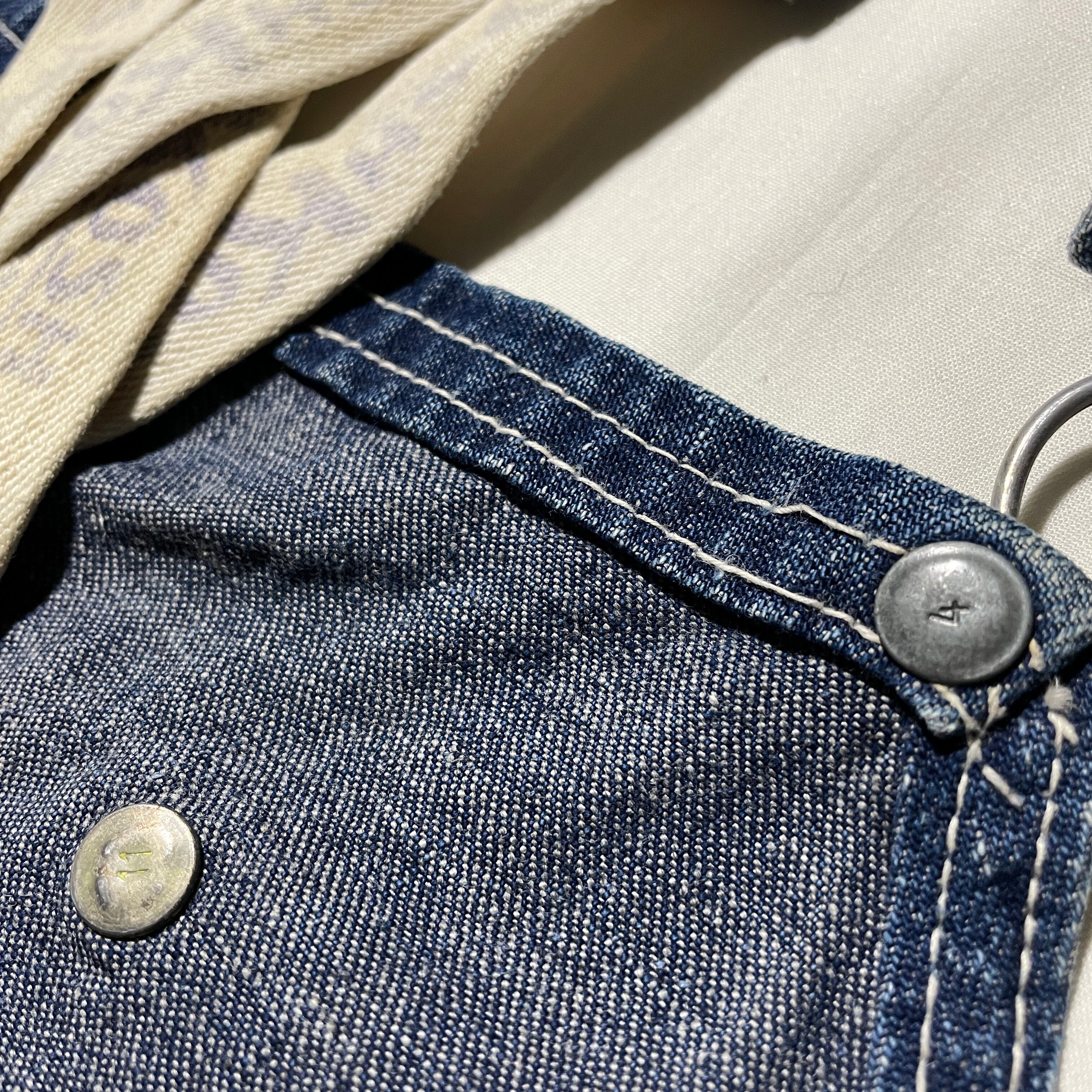 こちらは50s頃のローバックタイプのオーバーオール。バックはゴムストラップを編んだようなデザインになっているこの年代のヴィンテージではよく見るデザイン。