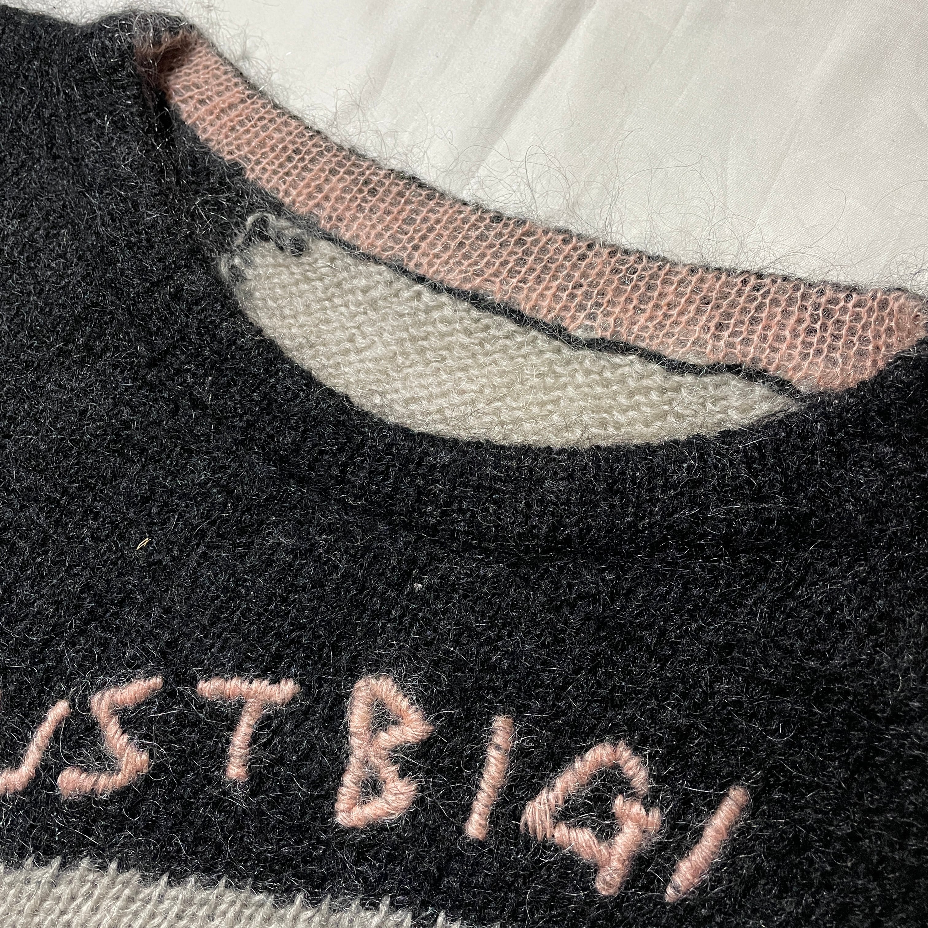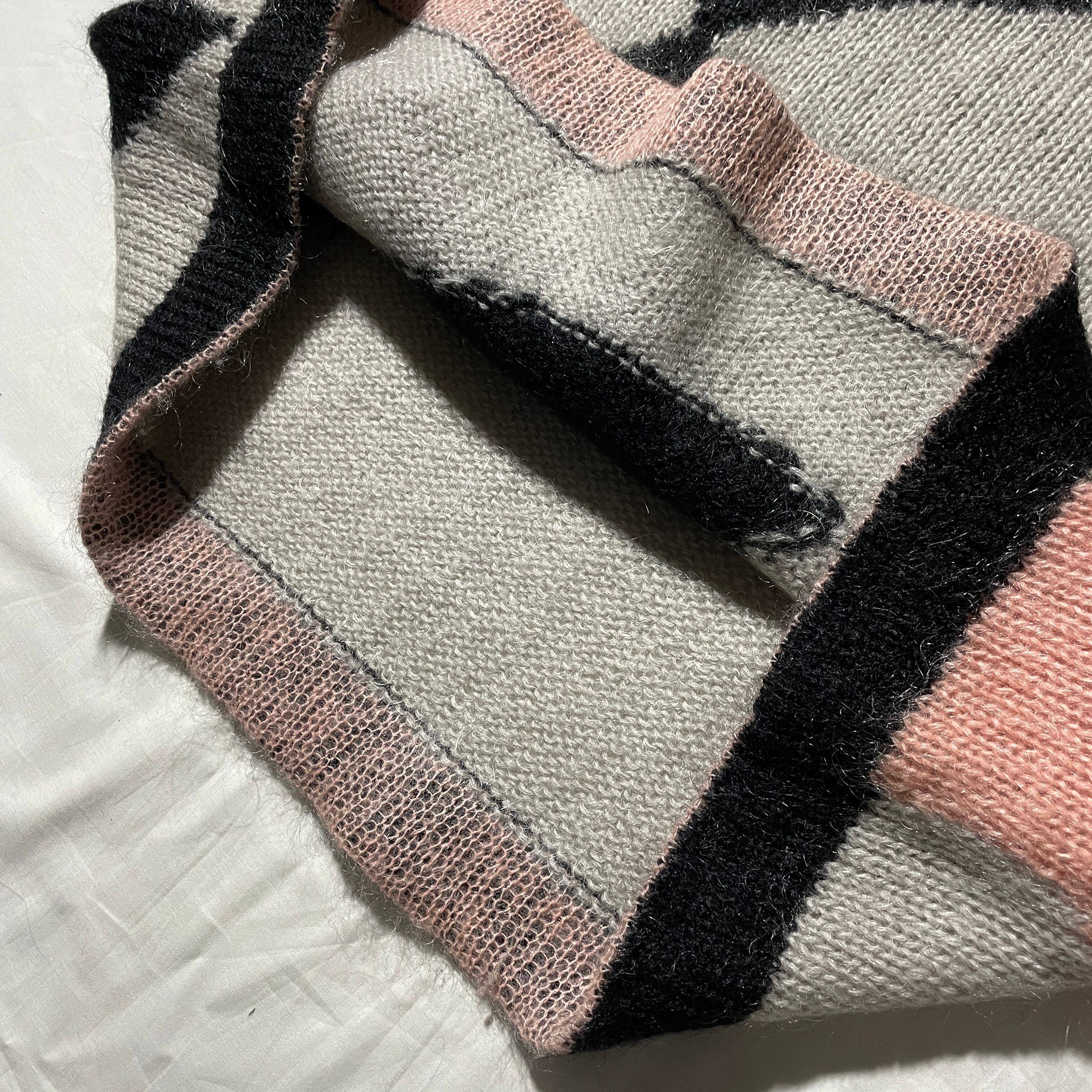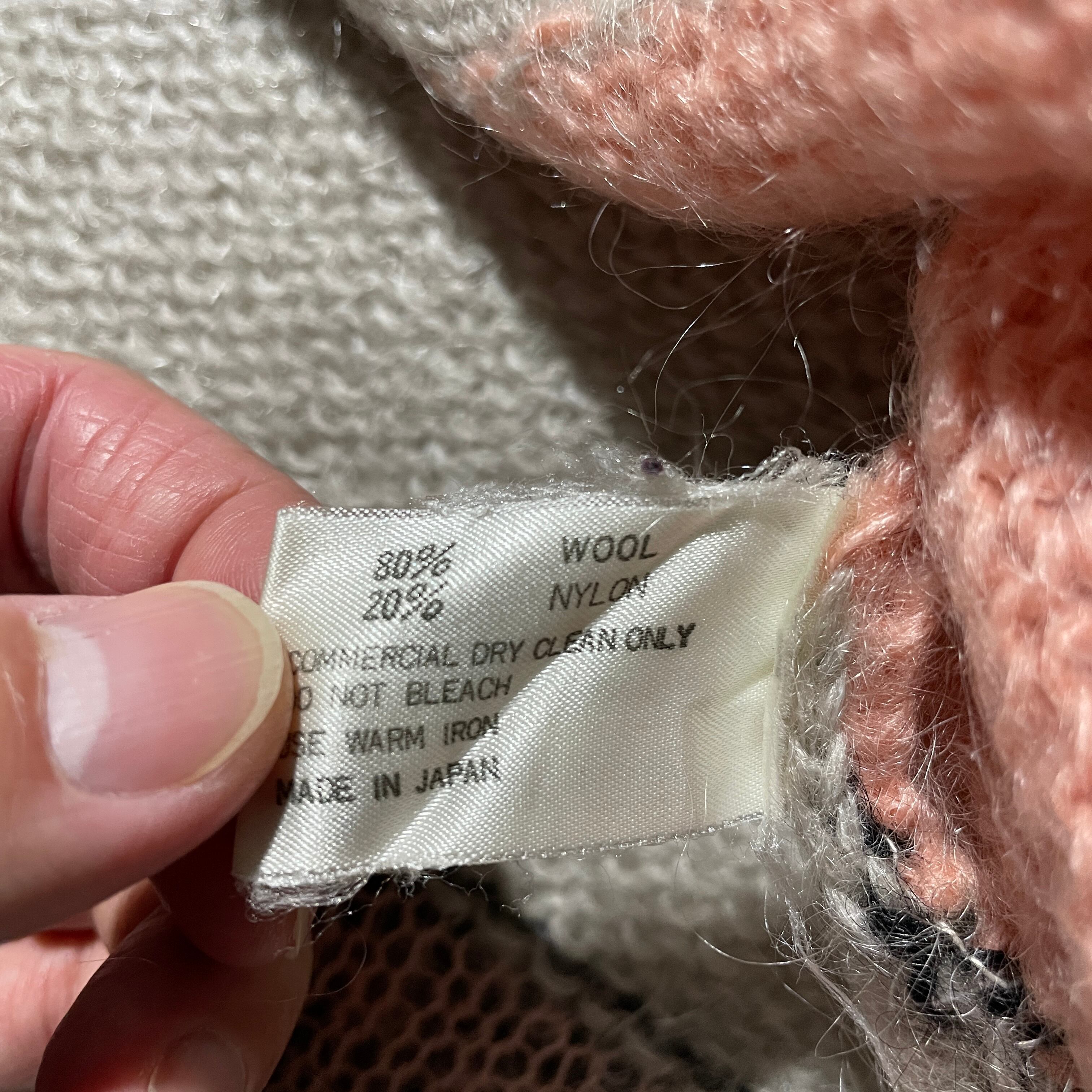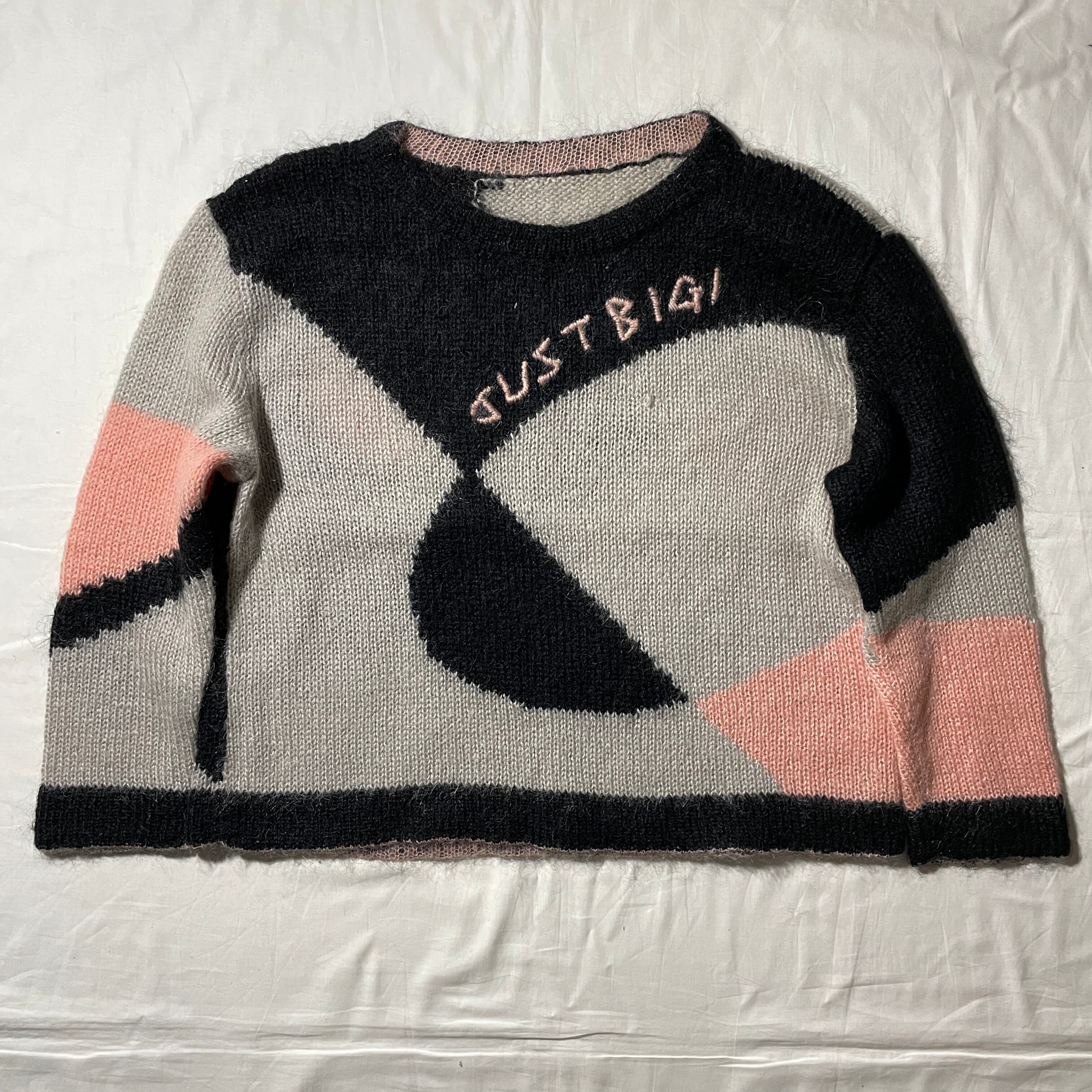 80s-90s頃のJUST BIGIライン。やや毛羽立ちのあるモヘアライクなボディに幅広丈短の面白いデザイン。