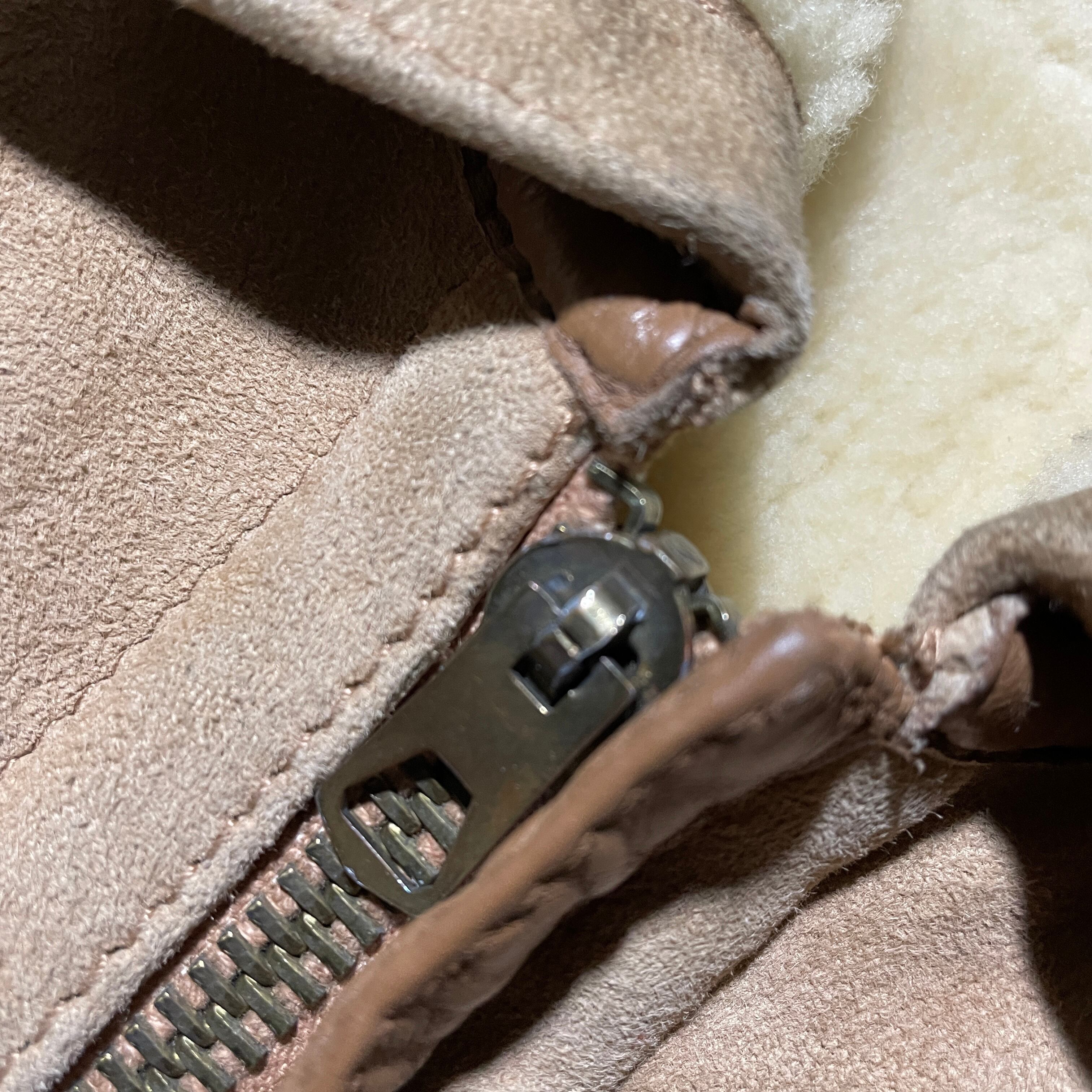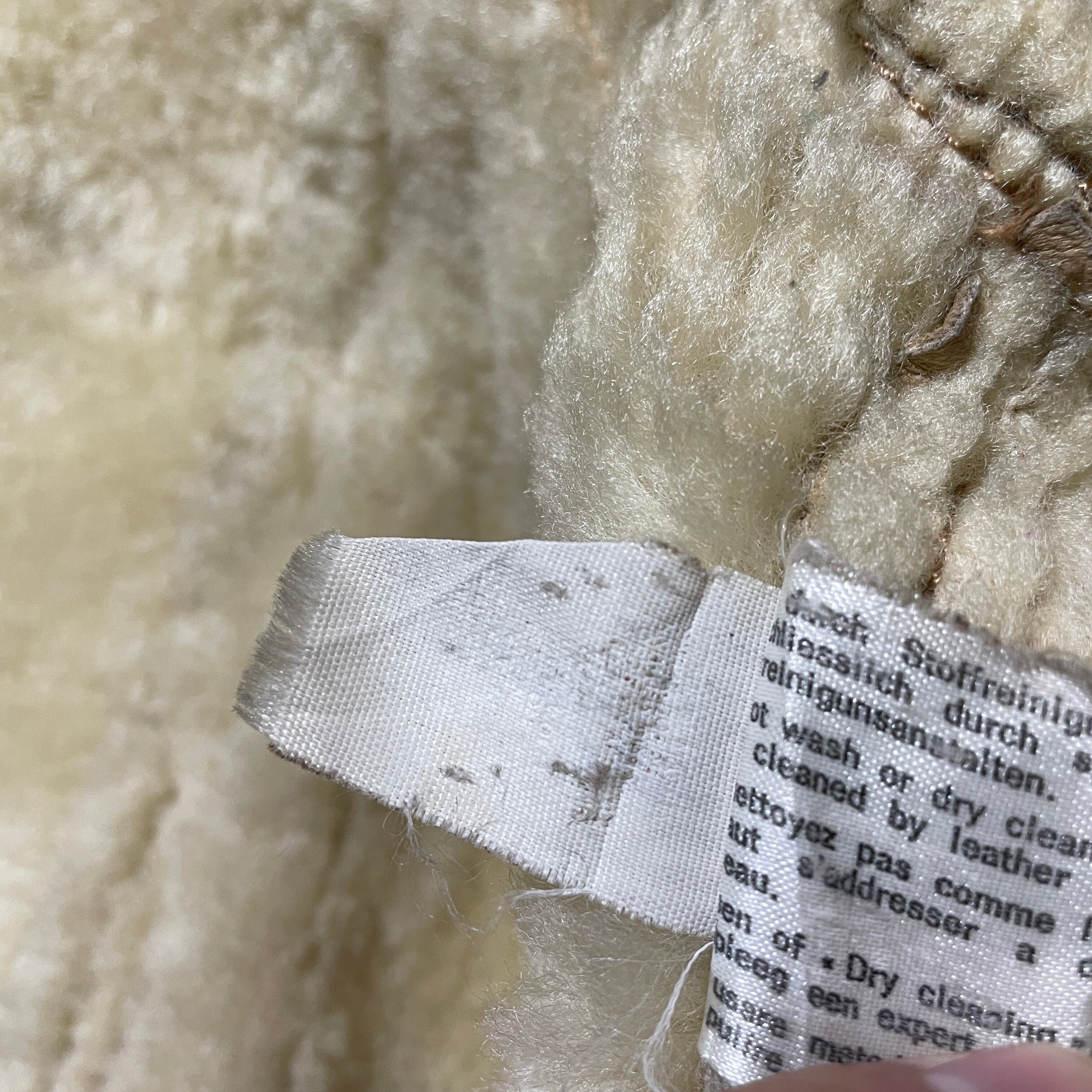 50s-60sあたりのムートンジャケット。コの字留めは40sまでのディテールですが内タグやリブの感じからそれ以降かと思います。ジップはUSA製表記等なにも無し。