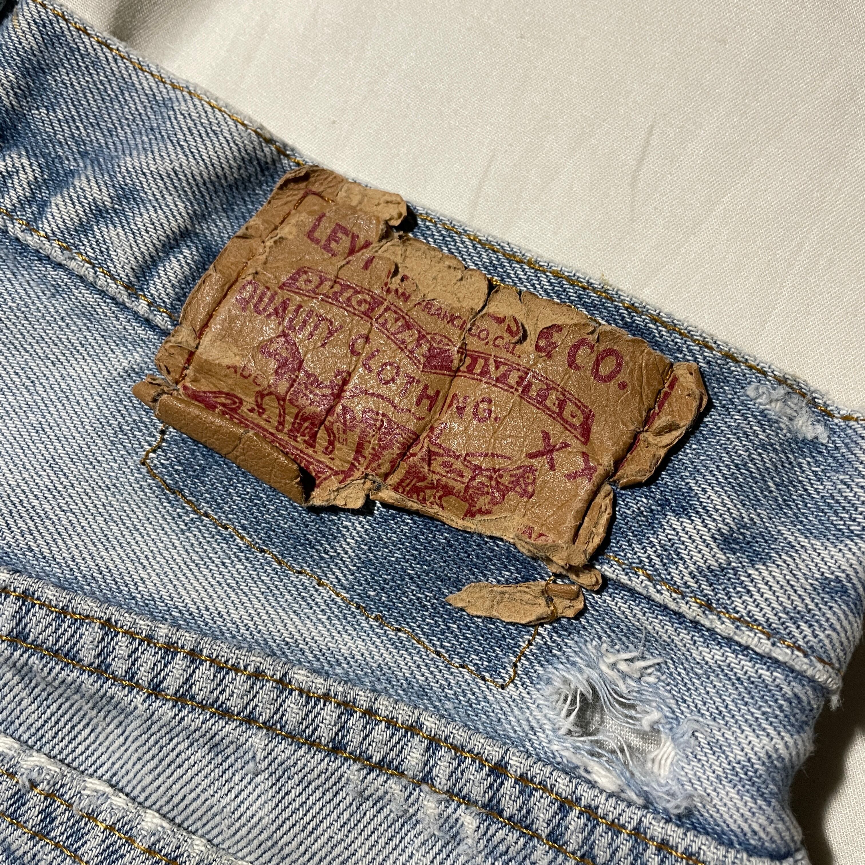 この年代特有の全体的に色落ちしたアイスブルーカラー。ヴィンテージ特有の使用感はありますが古着慣れされていれば問題無く着用可能なコンディションです。