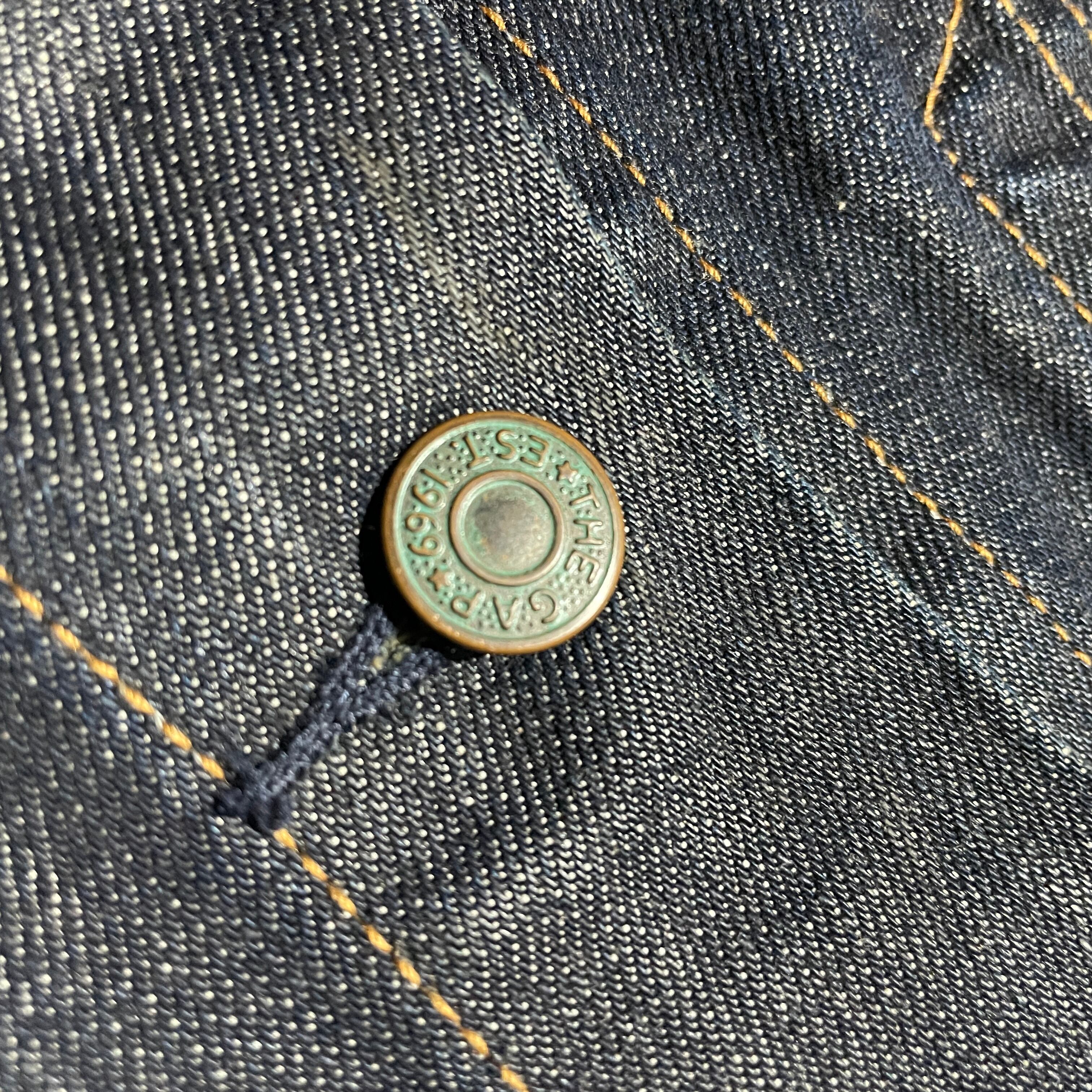 デニムがまだ硬くワンウォッシュくらいのコンディションかと思います。M表記ですがこの年代のGAP特有の大きめの作りでXLくらいあると思います。