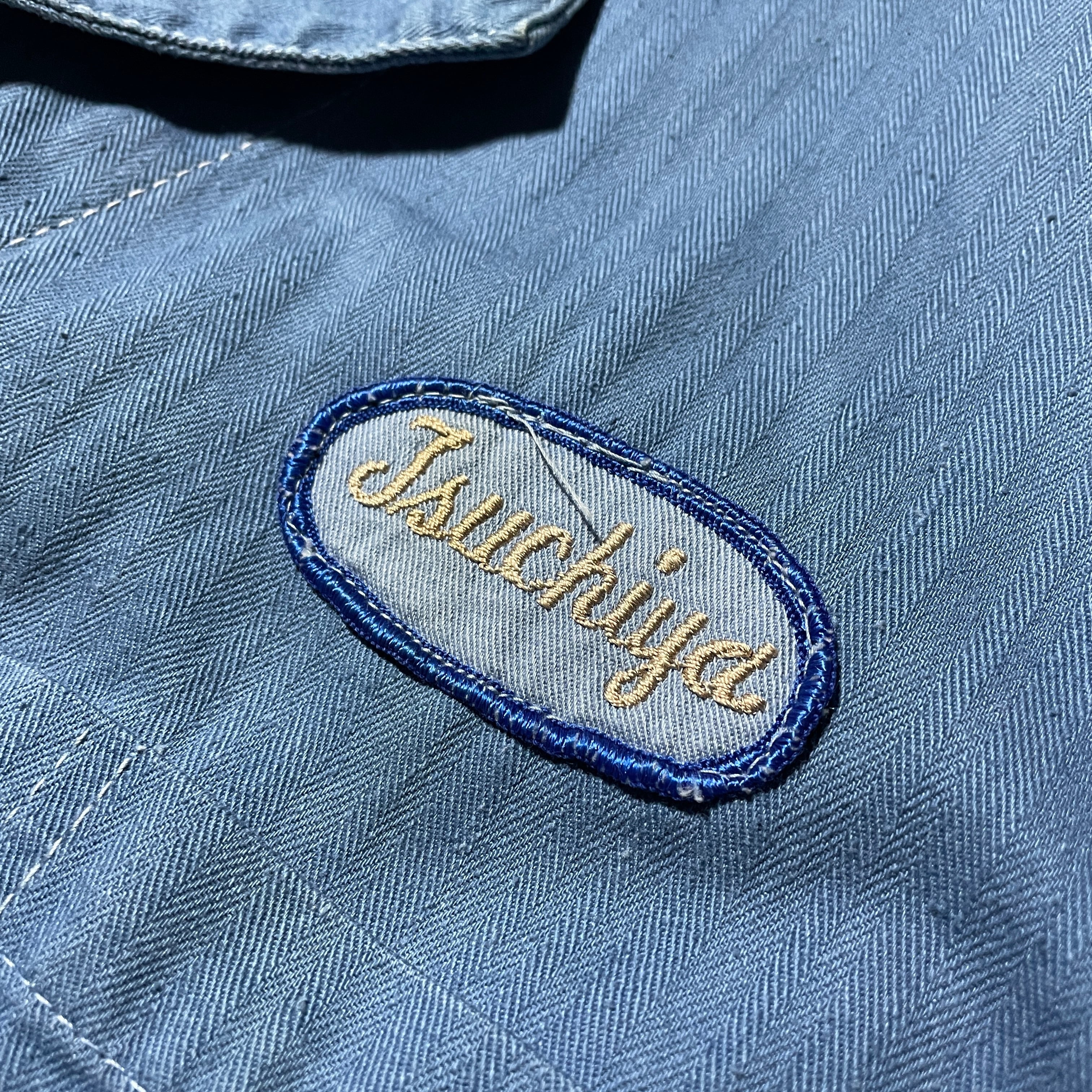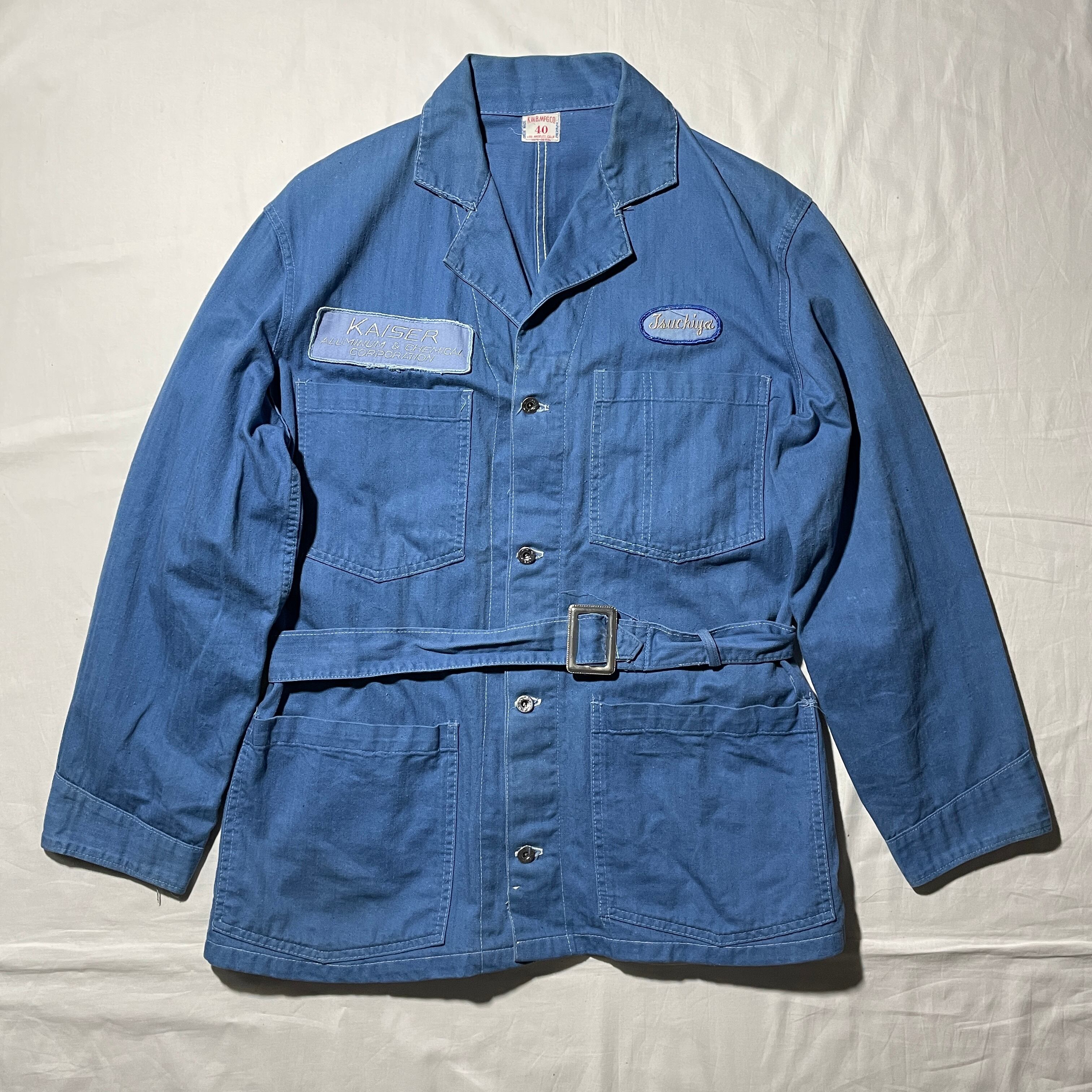 50s-60sあたりのヘリンボーンの所謂ショップコート。KAISERという化学系工場のものTsuchiyaと言う日系人が使用していた事のわかるネーム入り。