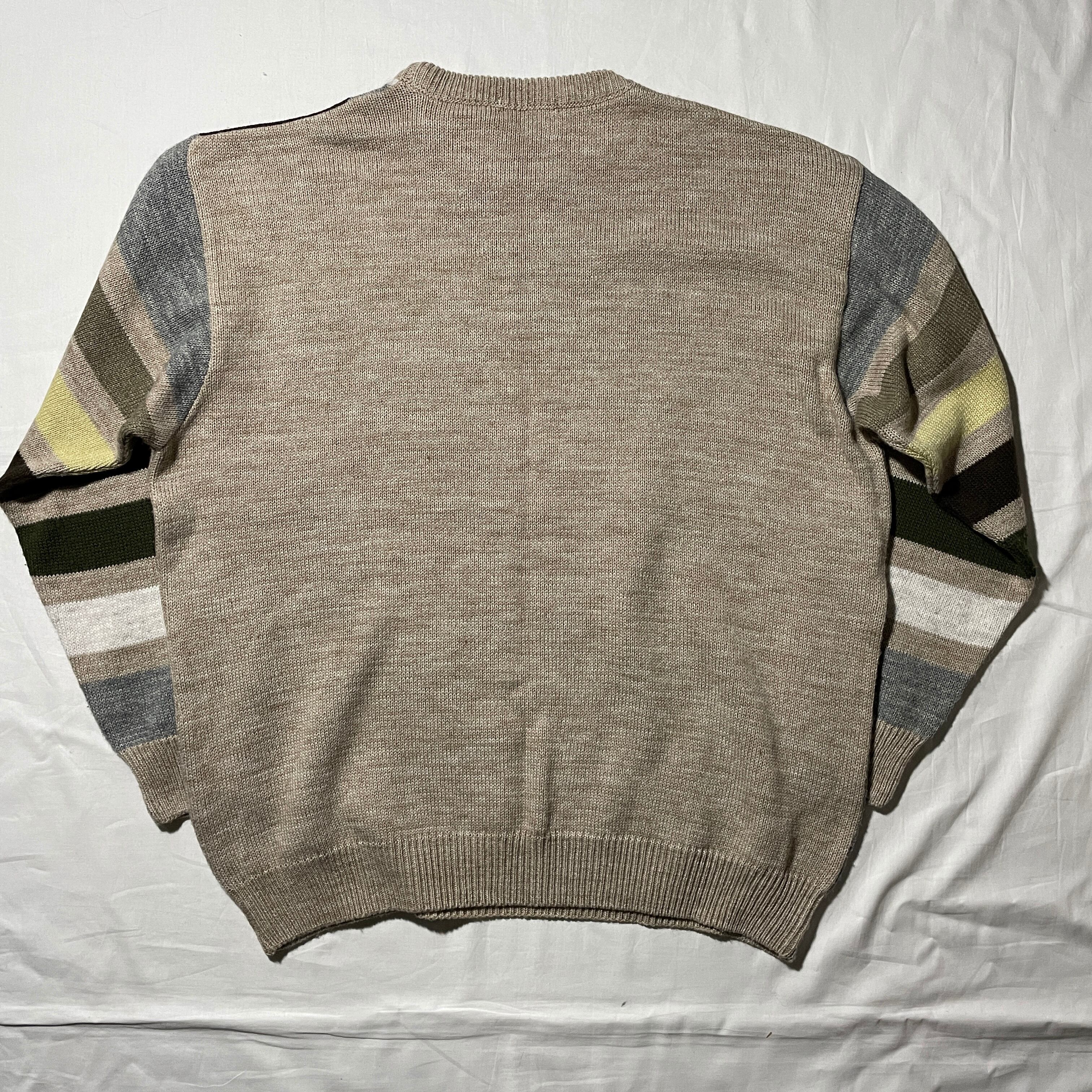 80s-90s頃のIagoというイタリアのブランド。フロントはアーガイルライクなひし形パターンで袖はボーダーパターンになっている面白いデザイン。