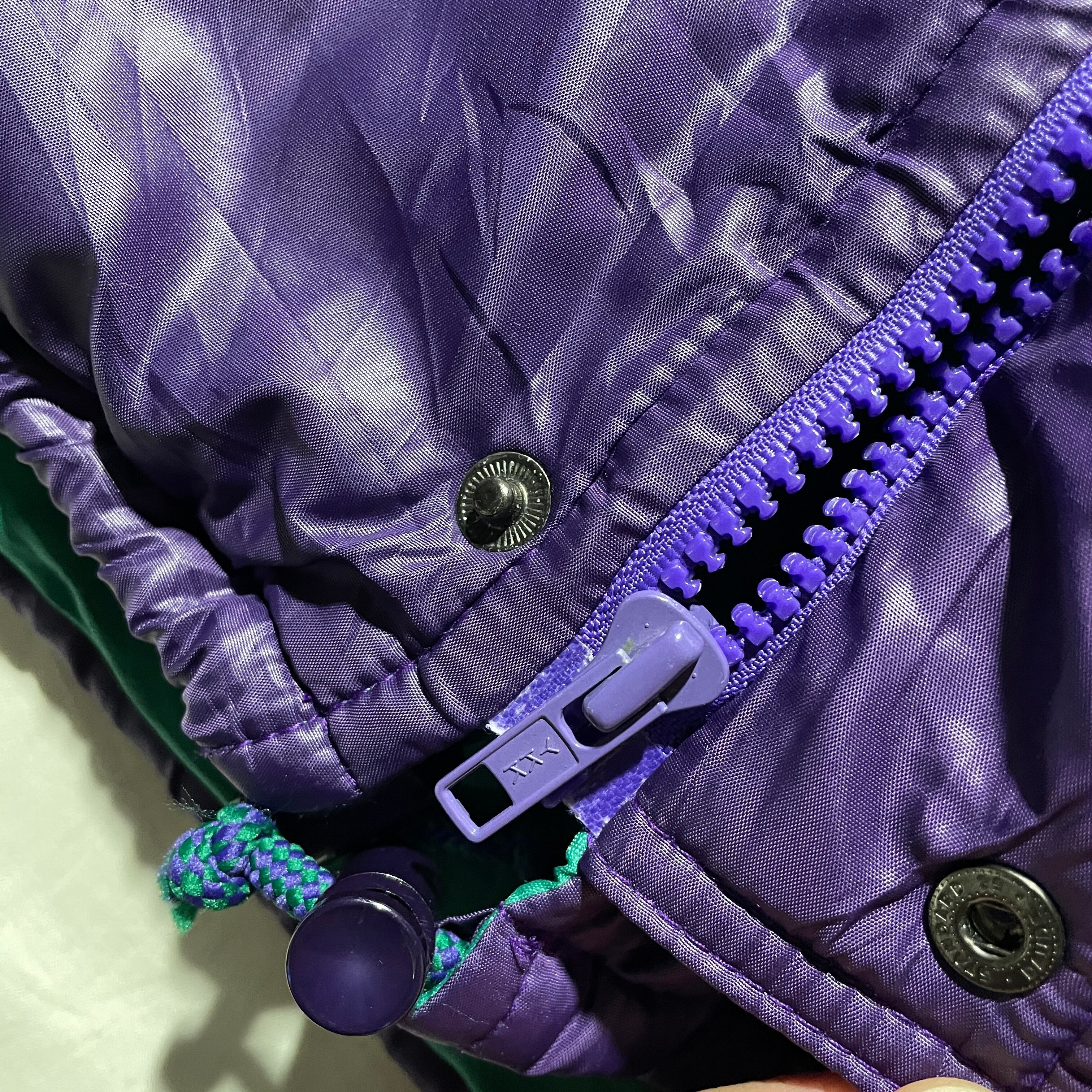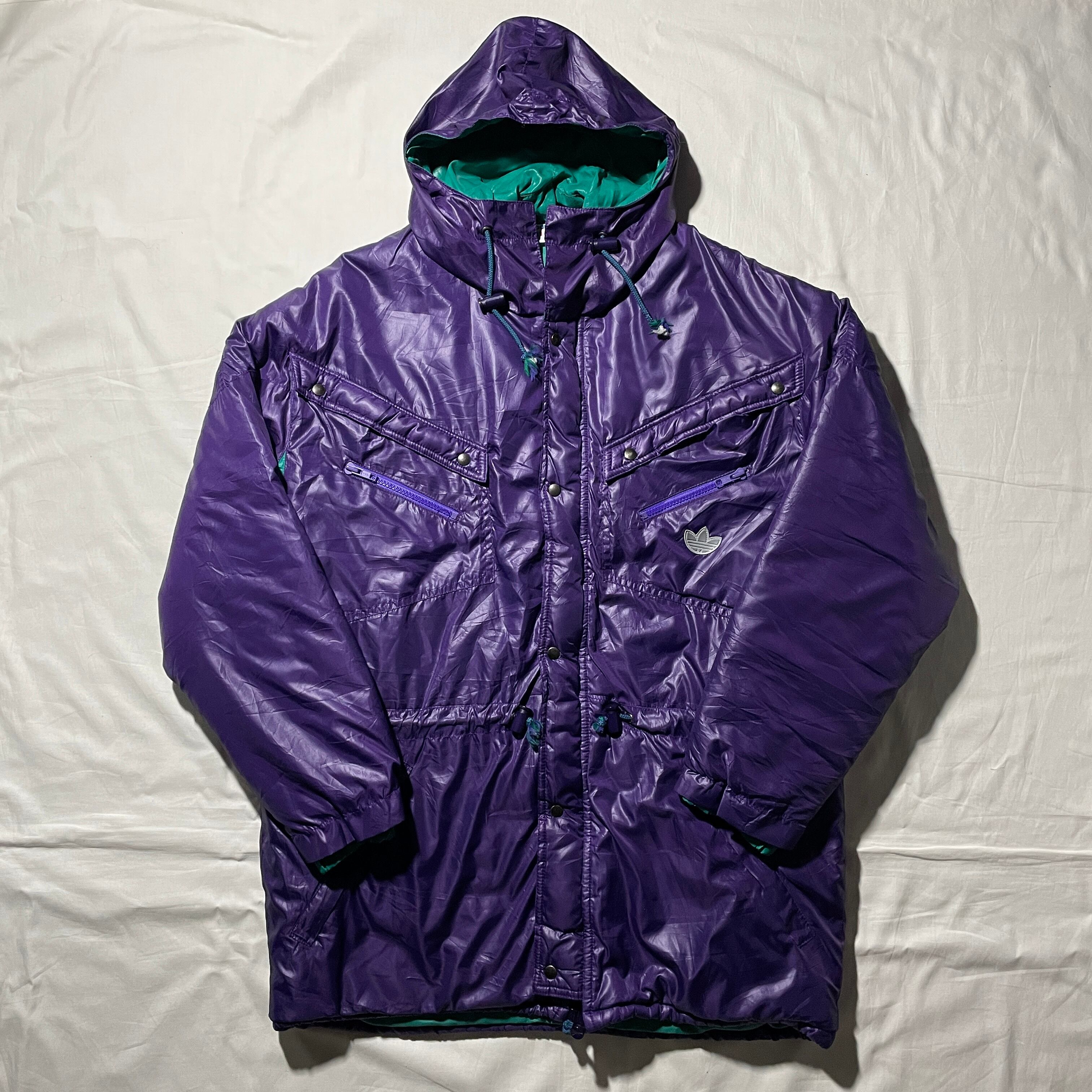 珍しいタイプのフランス製adidas。中綿入りのフード付きナイロンミドルコートのような感じでスキーウェアとして販売されたものと推測します。