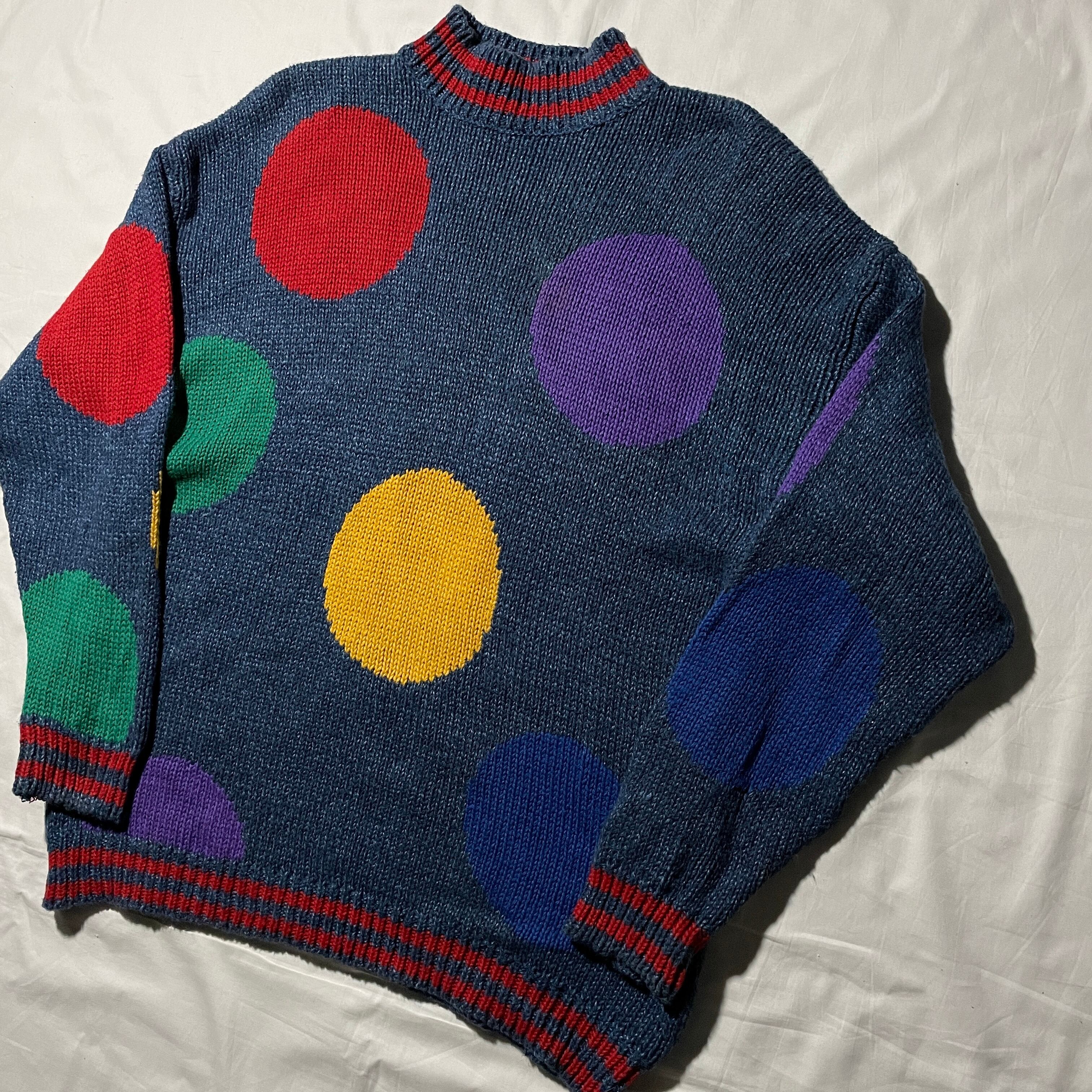 90s Liz wear コットン×リネン セーター ヴィンテージ 水玉