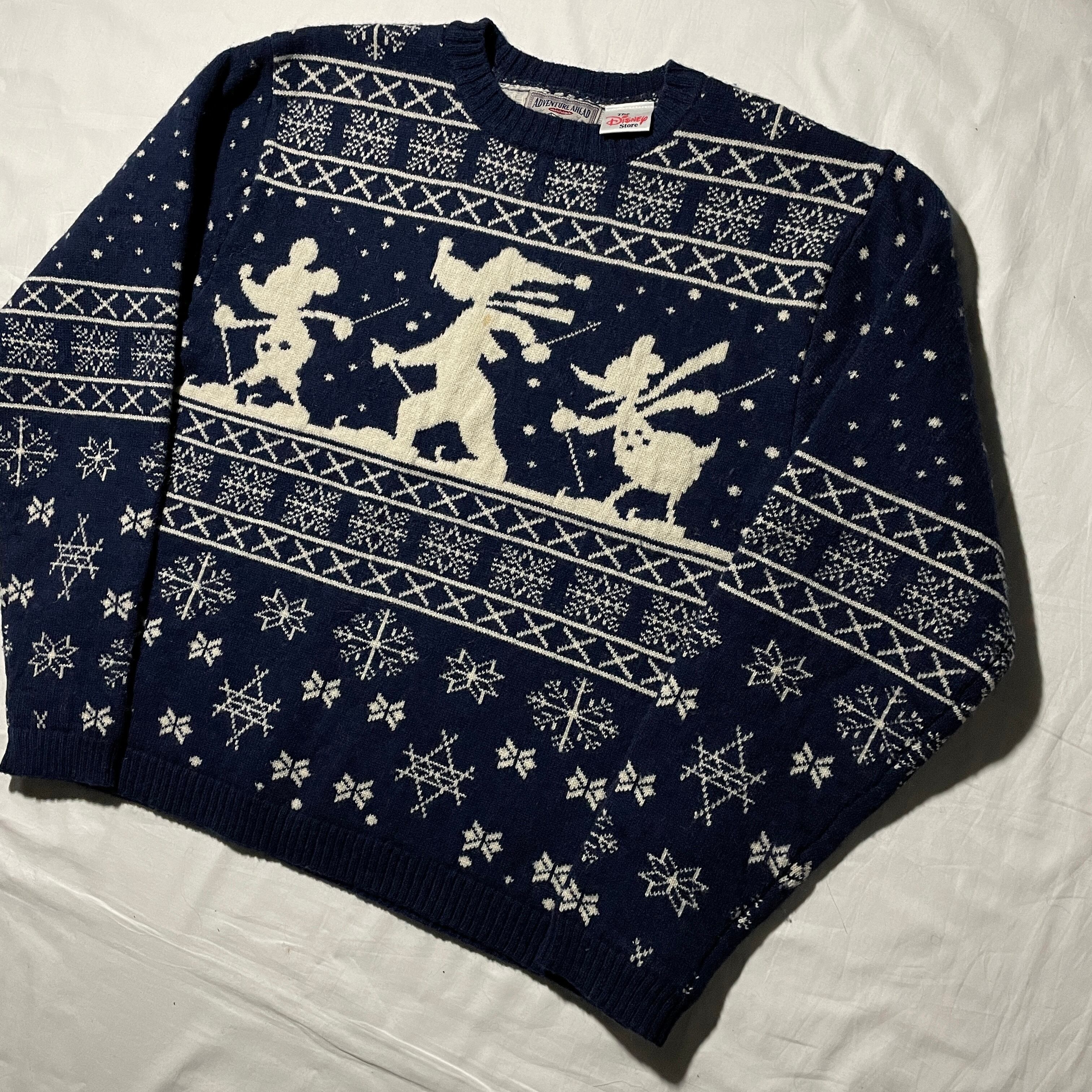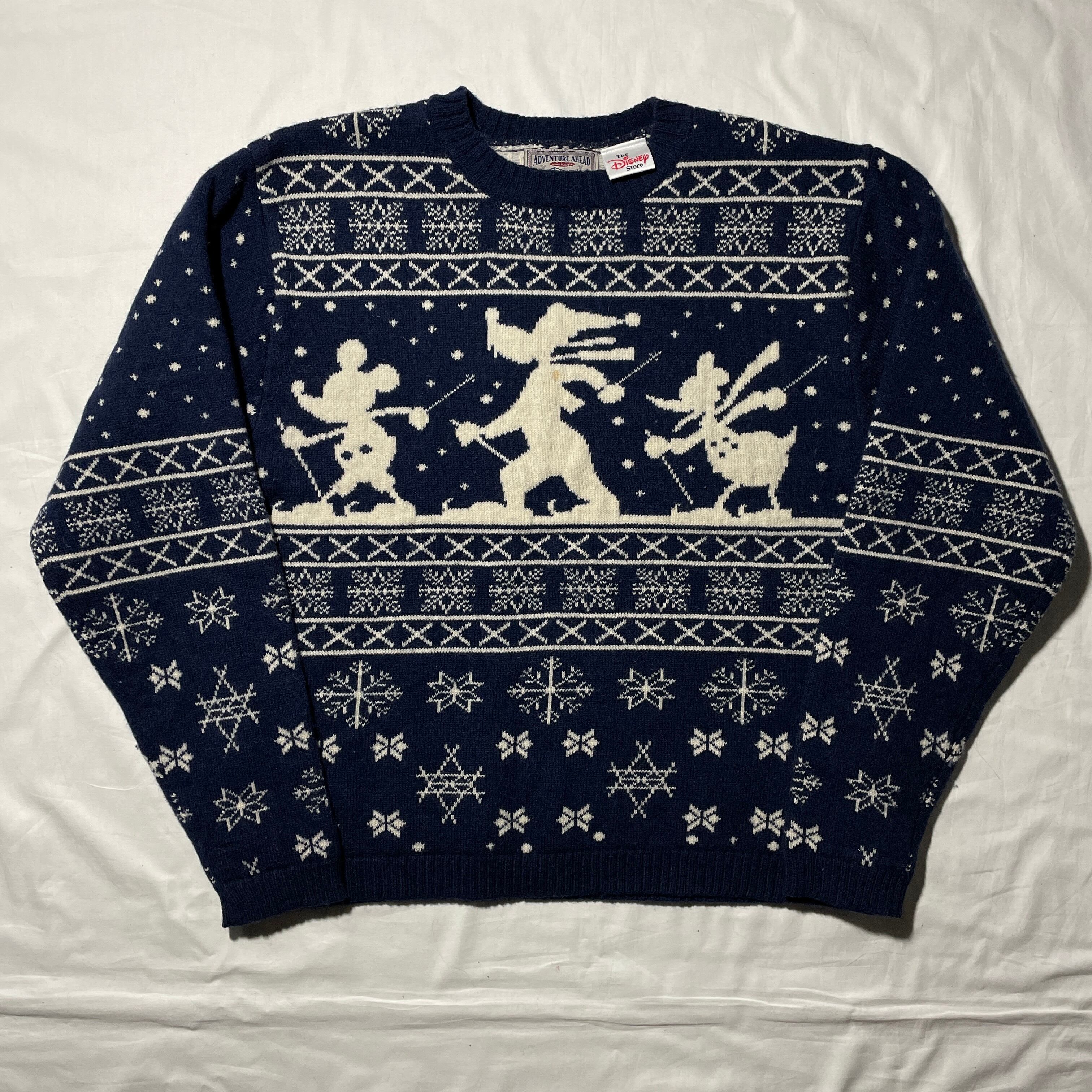90s-00s頃のDisney storeオフィシャルアイテム。フロントにミッキー、ドナルド、グーフィーのシルエットが入るノルディックセーター。