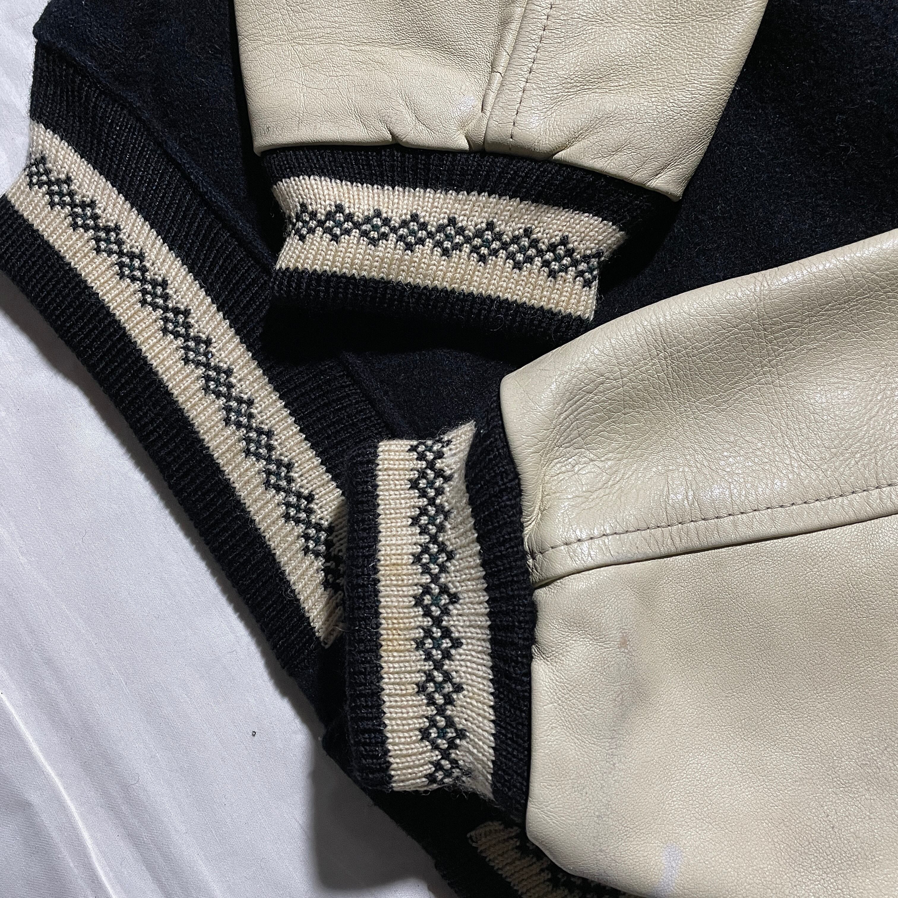 93s JUST BIGIのアワードジャケット。ボディは質の高いウールメルトン、袖はカウレザーで当時の販売価格も相当高額だったと予想できる一着です。