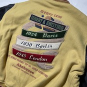 フロント、バック共に歴代のオリンピック開催地が入るgoodデザイン。袖口の一部だけレザーになっているディテールはSKOOKUMを彷彿とさせるデザインです。