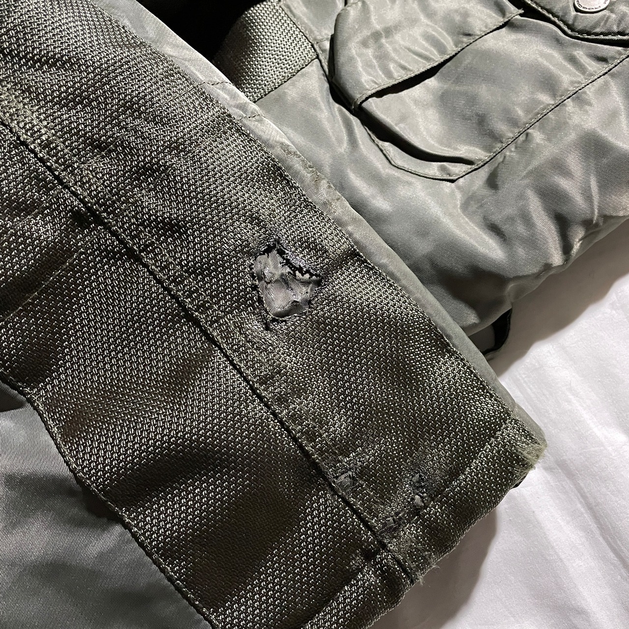 バック左腰あたりにほつれ、裾口あたりに破れあり。破れは下まで空いてはいないので着用には問題ありません。古着慣れされていれば問題無く着用可能なコンディションです。