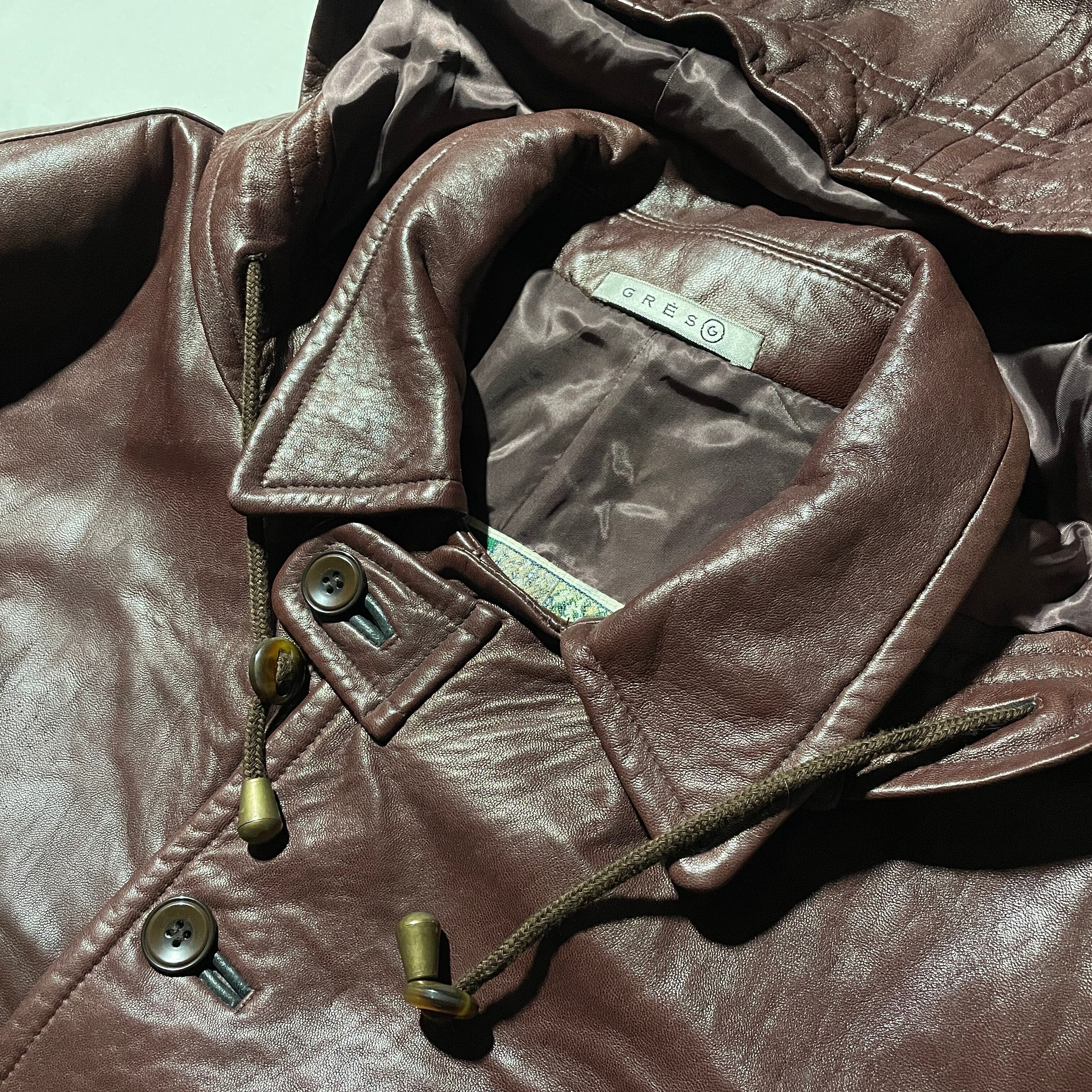 80s頃のGRESというブランドのレザーミドルコート。