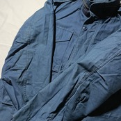 ヴィンテージ特有の使用感あり。画像だとわかりにくいですが袖や肩付近に若干焼けがあります。襟に収納されているフードは切り取られており欠損しています。