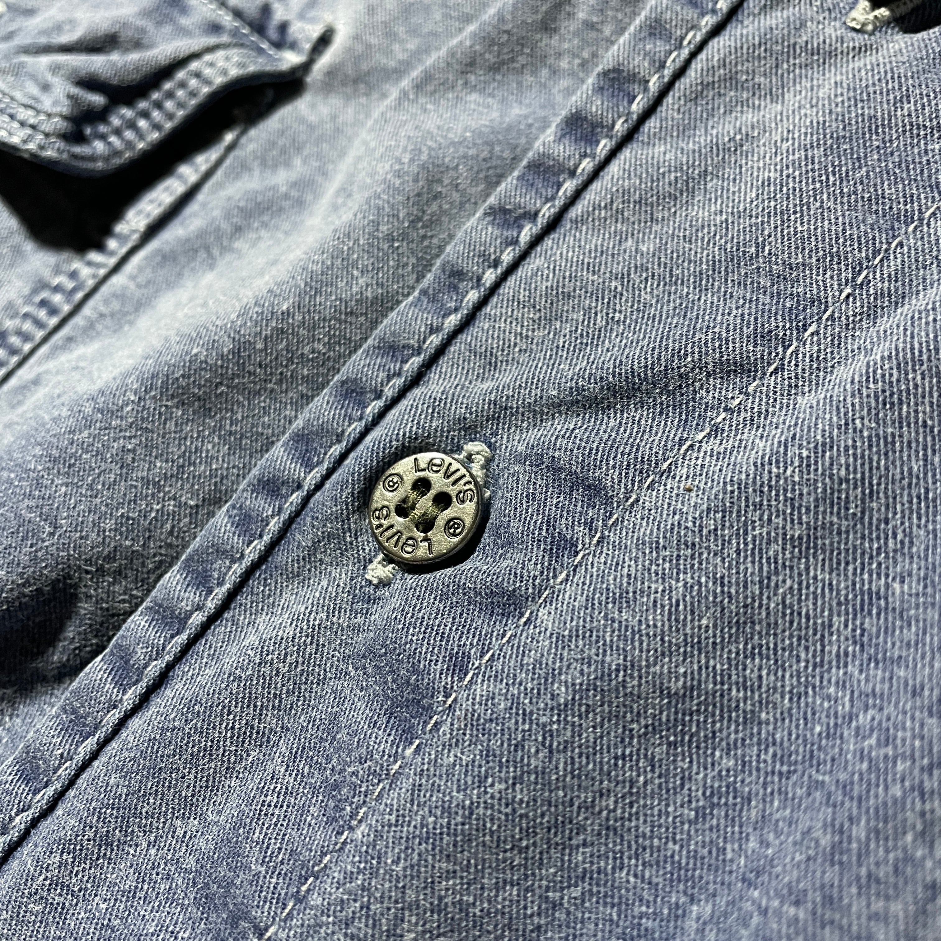 90s頃のLevi’s ワークシャツ。薄手のパリっとしたコットン地にメタルボタンのヴィンテージワークを意識した一着。