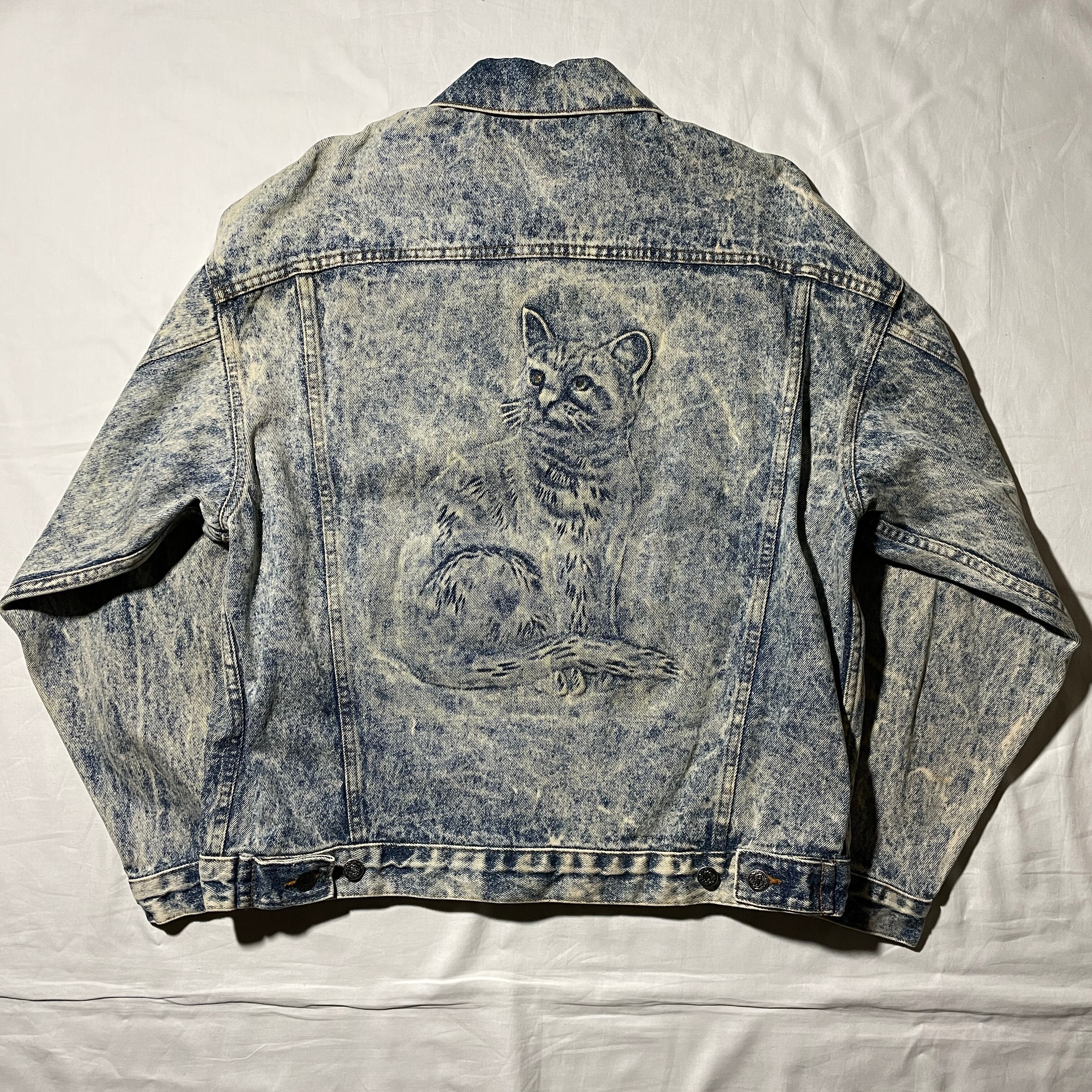 80s- ストアブランド デニムジャケット ヴィンテージ USA製 猫 3D