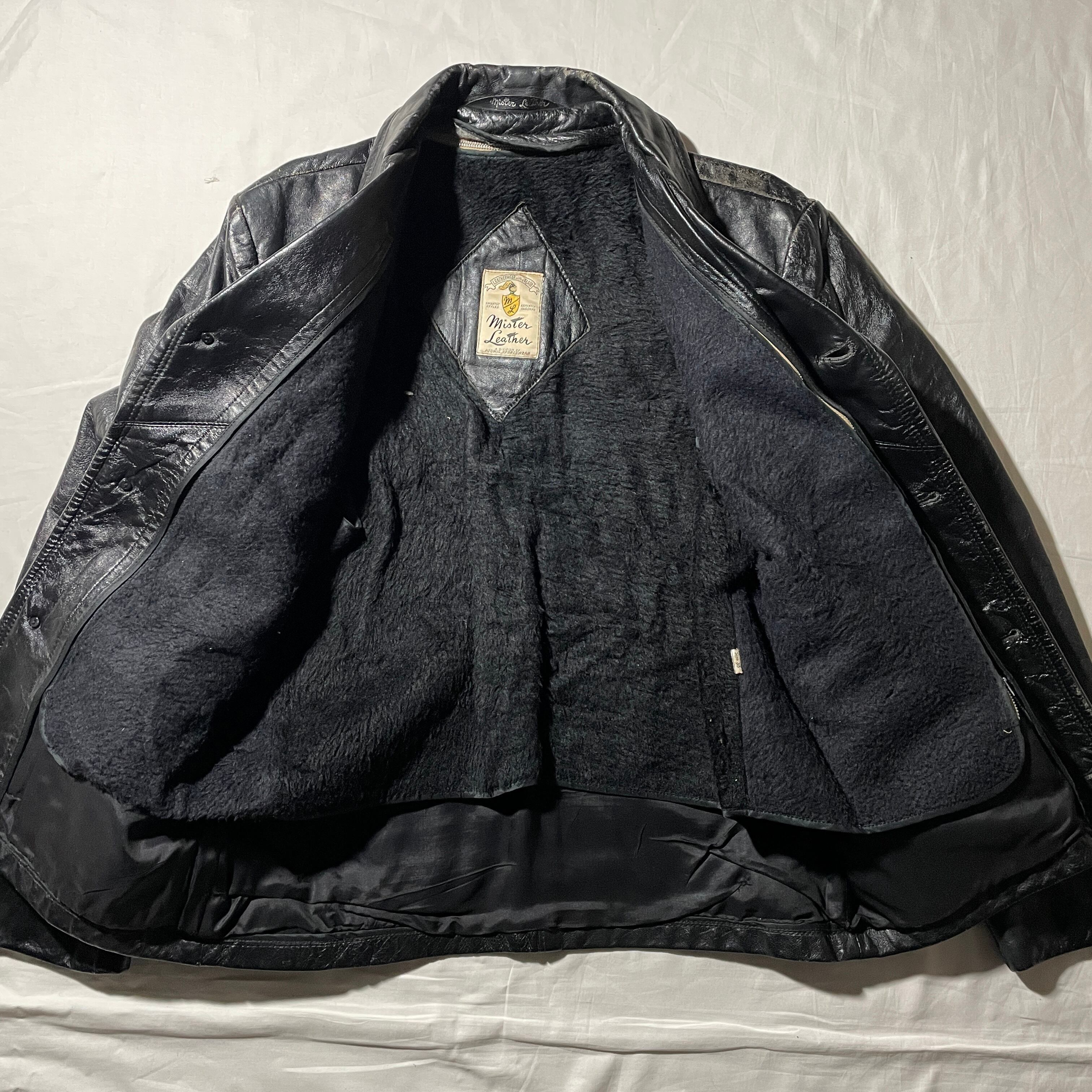 70s-80s頃のmister leatherというブランドのレザージャケット。ダブルブレストでヴィンテージのポリスジャケットに近いシルエット。