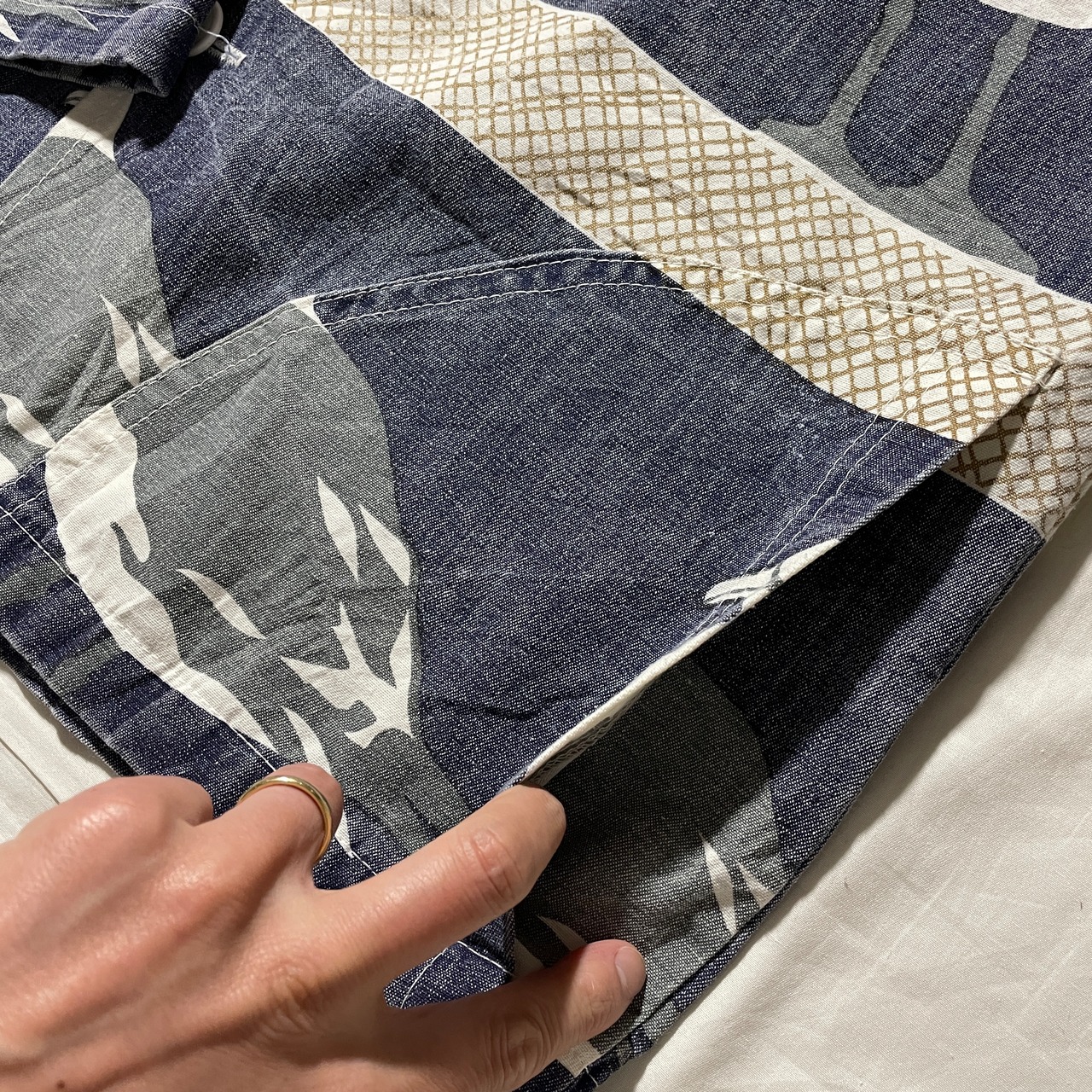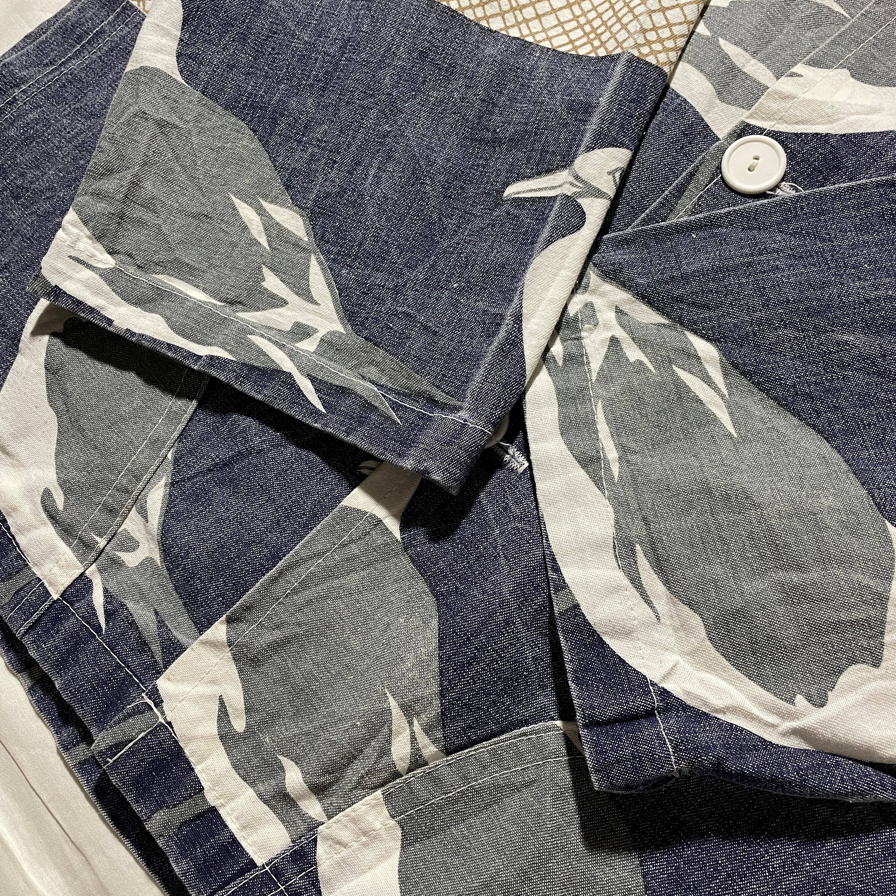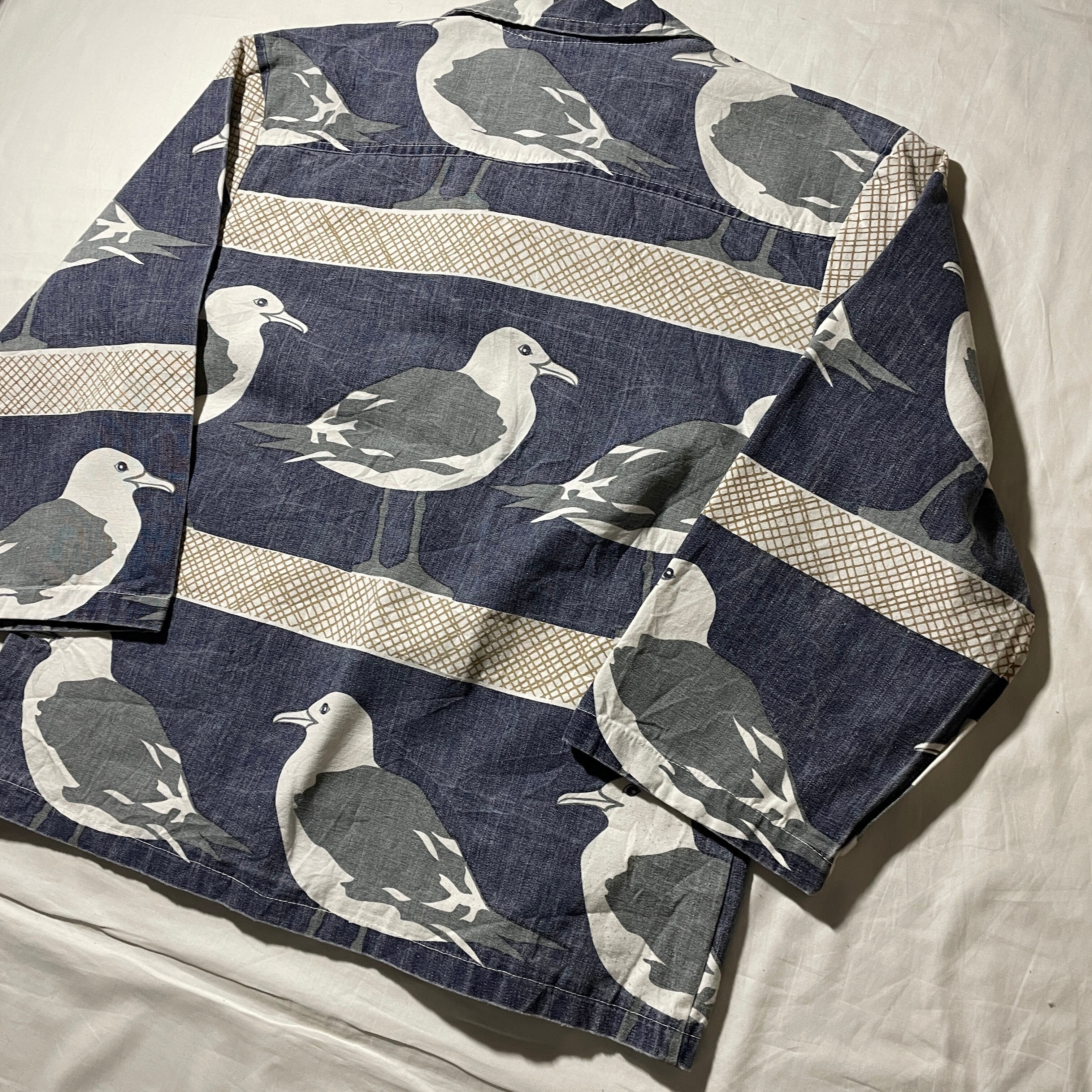 こちらはワークジャケットスタイルでカモメの総柄パターン。袖口が広く取られていて8部丈くらいのサイズ感なのでパーカーやシャツのレイヤーで良い感じに着こなせると思います。