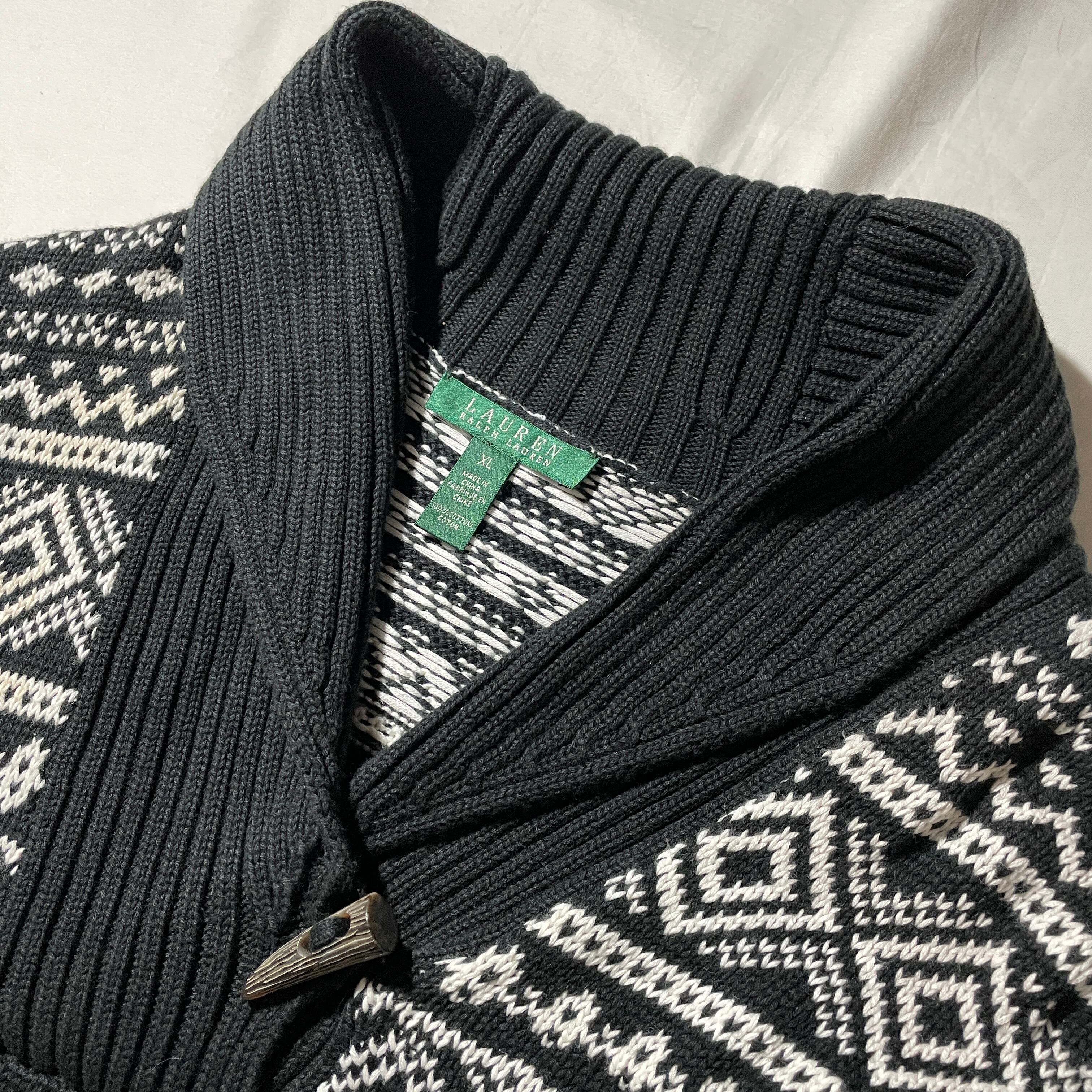 00s以降のLAUREN RALPH LAUREN。フェアアイルパターンのショールカラーコットンカーディガン。