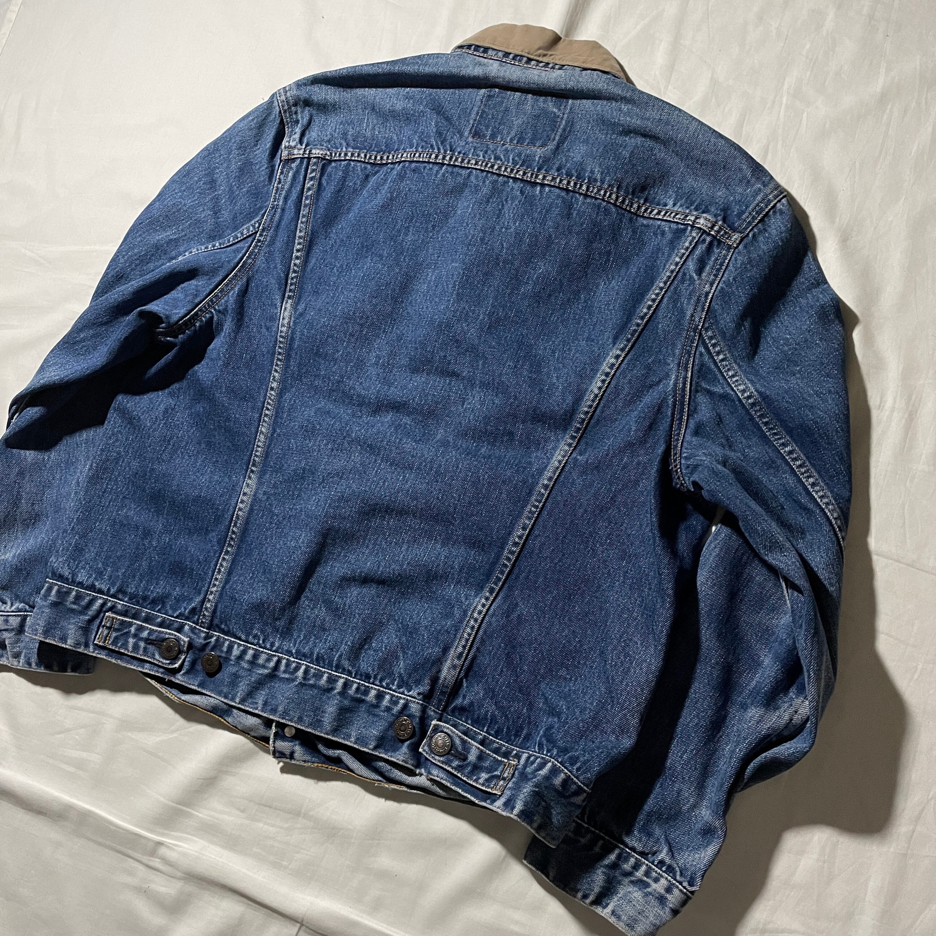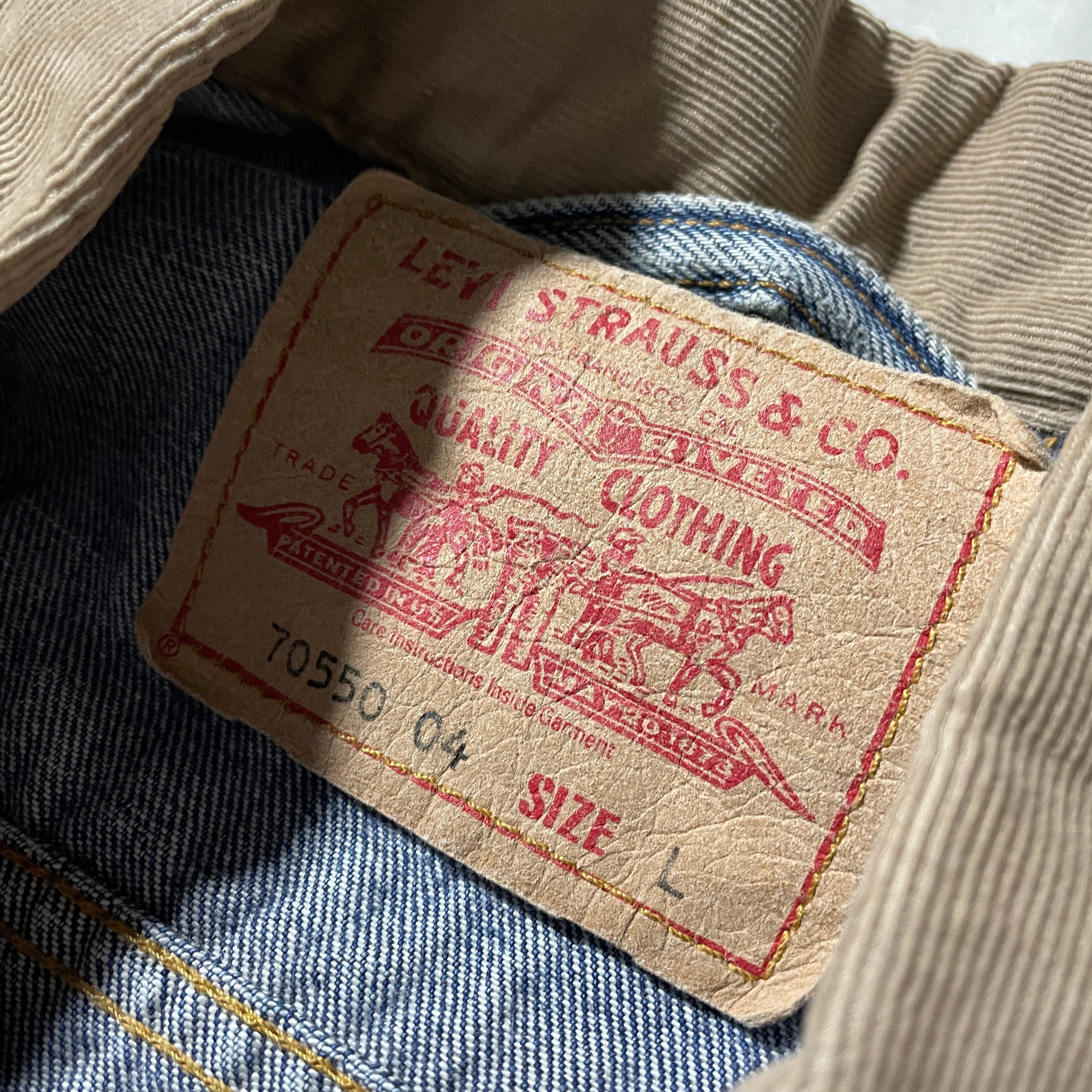 90s頃のEURO Levi’s。70506ベースで襟がコーデュロイ素材になっている70550。ユーロヴィンテージらしいやや鮮やかなグラデーションがかった色落ちです。