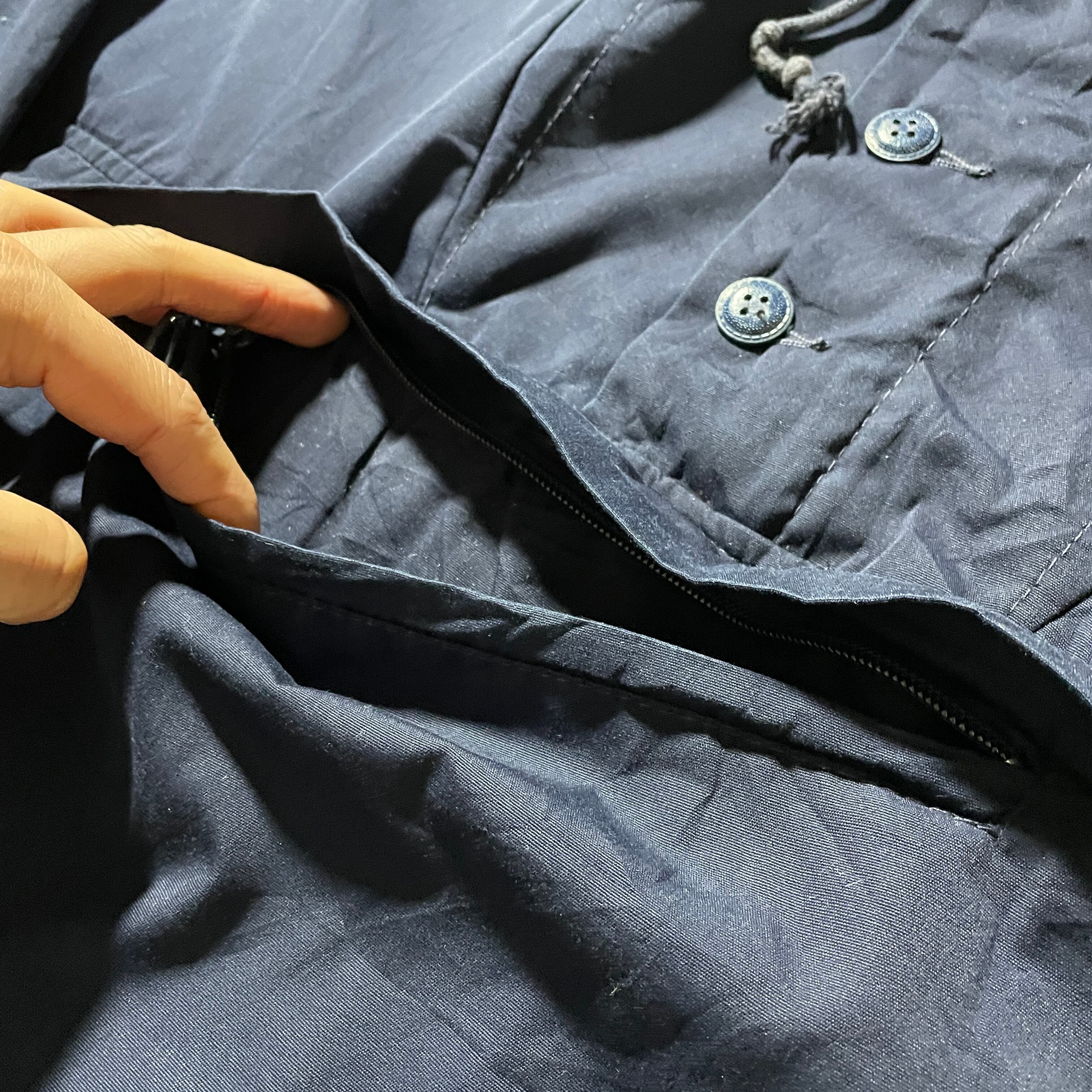 ミリタリースモックを彷彿とさせるシンプルで無骨なデザイン。濃いめのネイビーカラーはスタイルを選ばず着回しの効く一着かと思います。