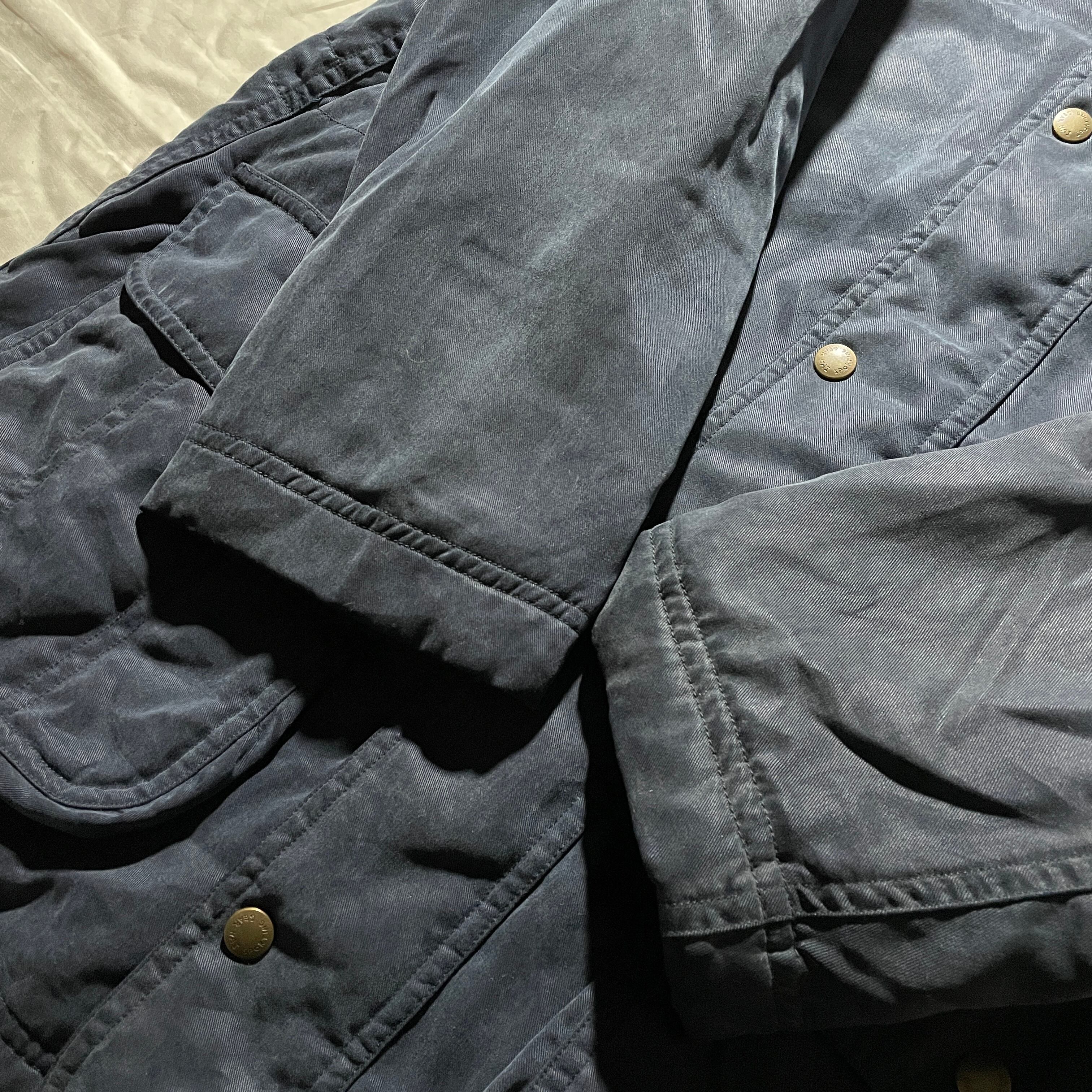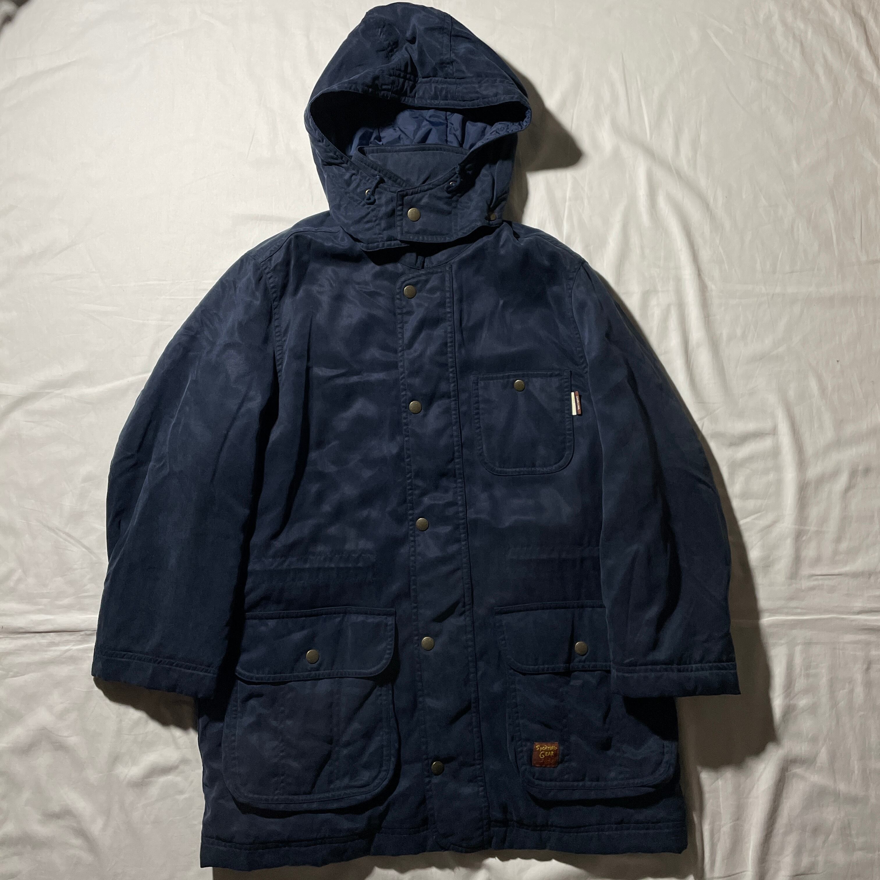 80s頃の当時多かったテンセルを使用した一着で光沢がありトロミがついたシルクのような肌触り。フードを取るとまた雰囲気が違う感じで楽しめます。