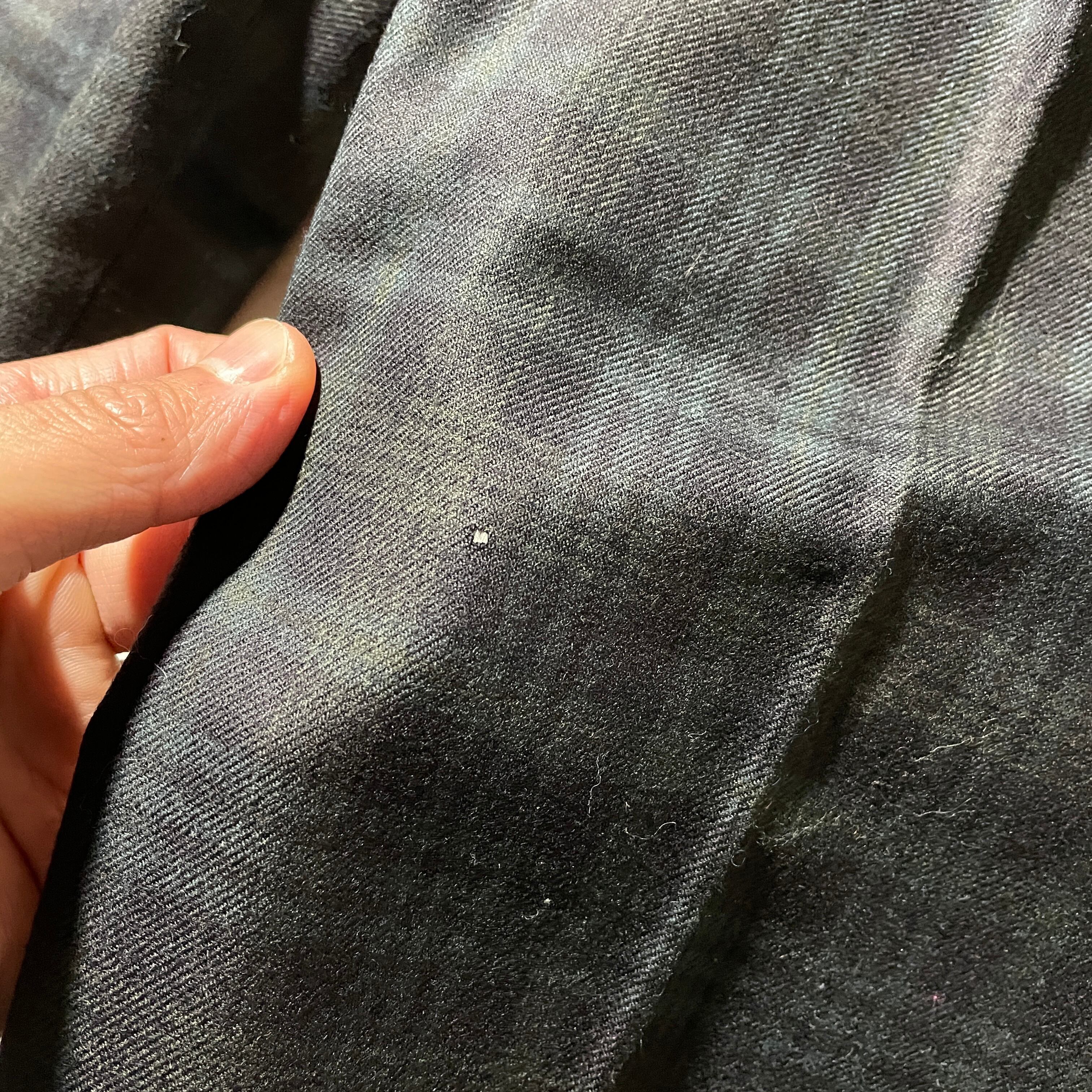着用感ほぼみられずdeadstockに近い状態ですがフロント左腿付近に一箇所ピンホールあり。着用する分には気にならないレベルかと思います。古着慣れされていれば問題無く着用可能なコンディションです。