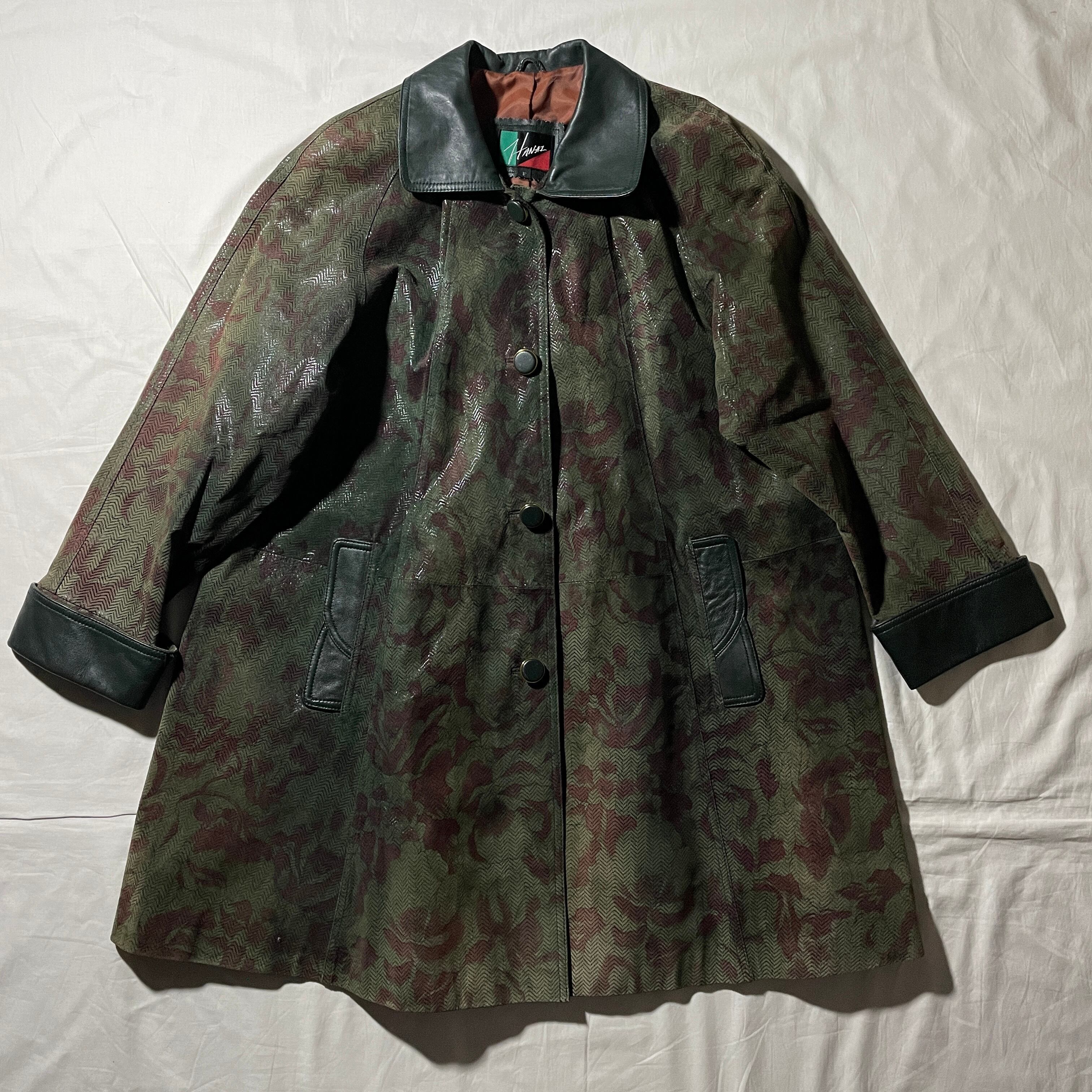 80s HANAI レザーコート 総柄 ヴィンテージ 昭和レトロ