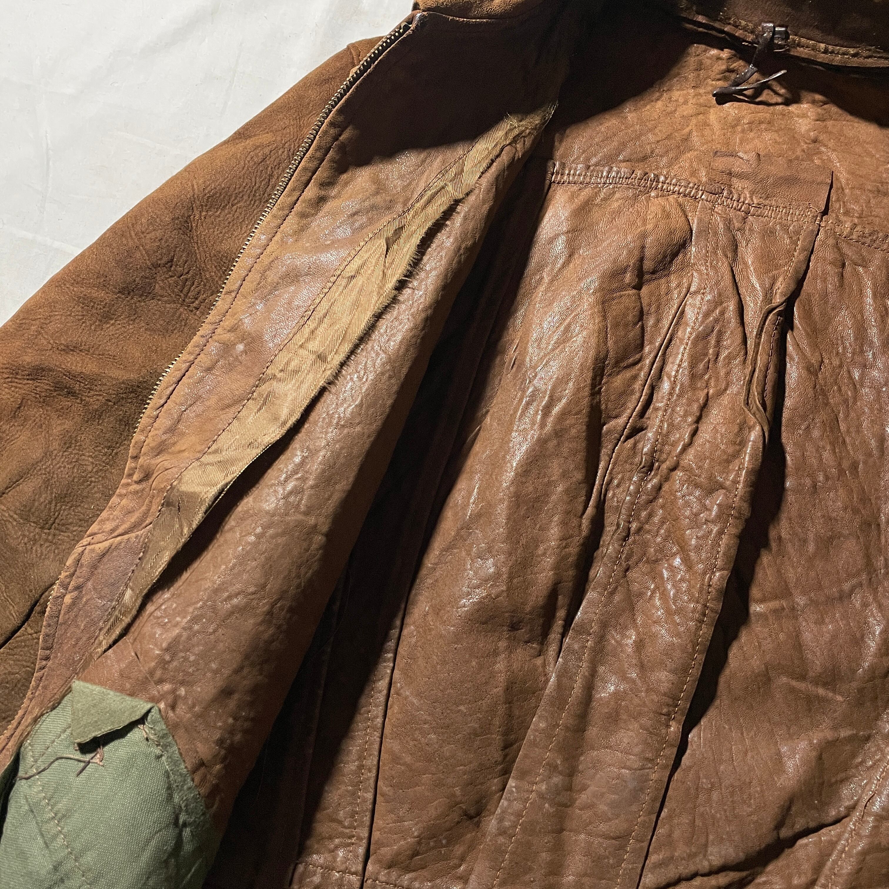 40s ヌバックレザー スポーツジャケット ヴィンテージ コの字留め 鳩目
