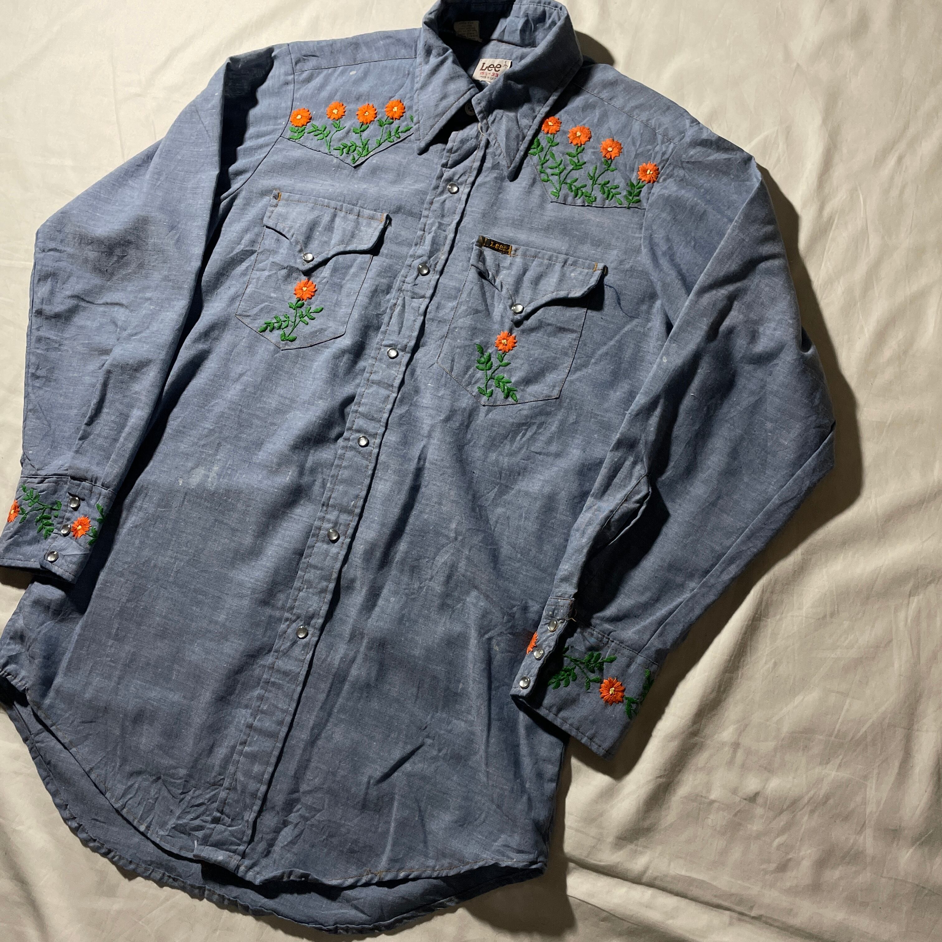 70s Lee シャンブレーウエスタンシャツ ヒッピー 刺繍 ヴィンテージUSA