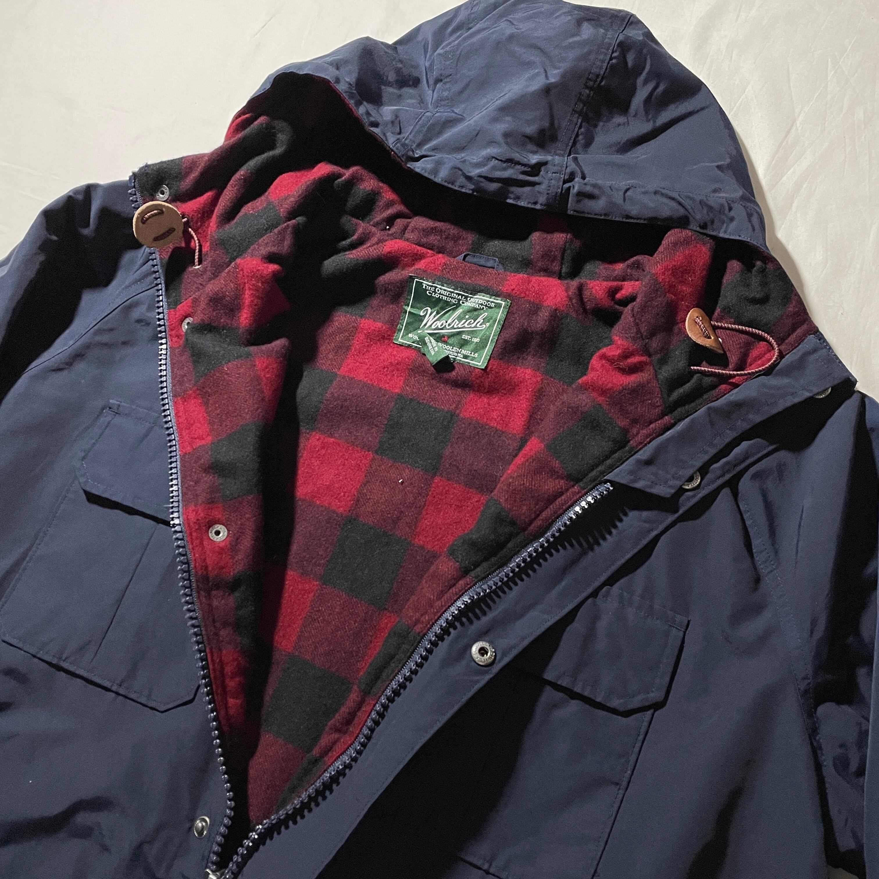 woolrichのマウンテンパーカー。同ブランドでは定番のアイテムでライナーはブロックチェックのウール地になってます。