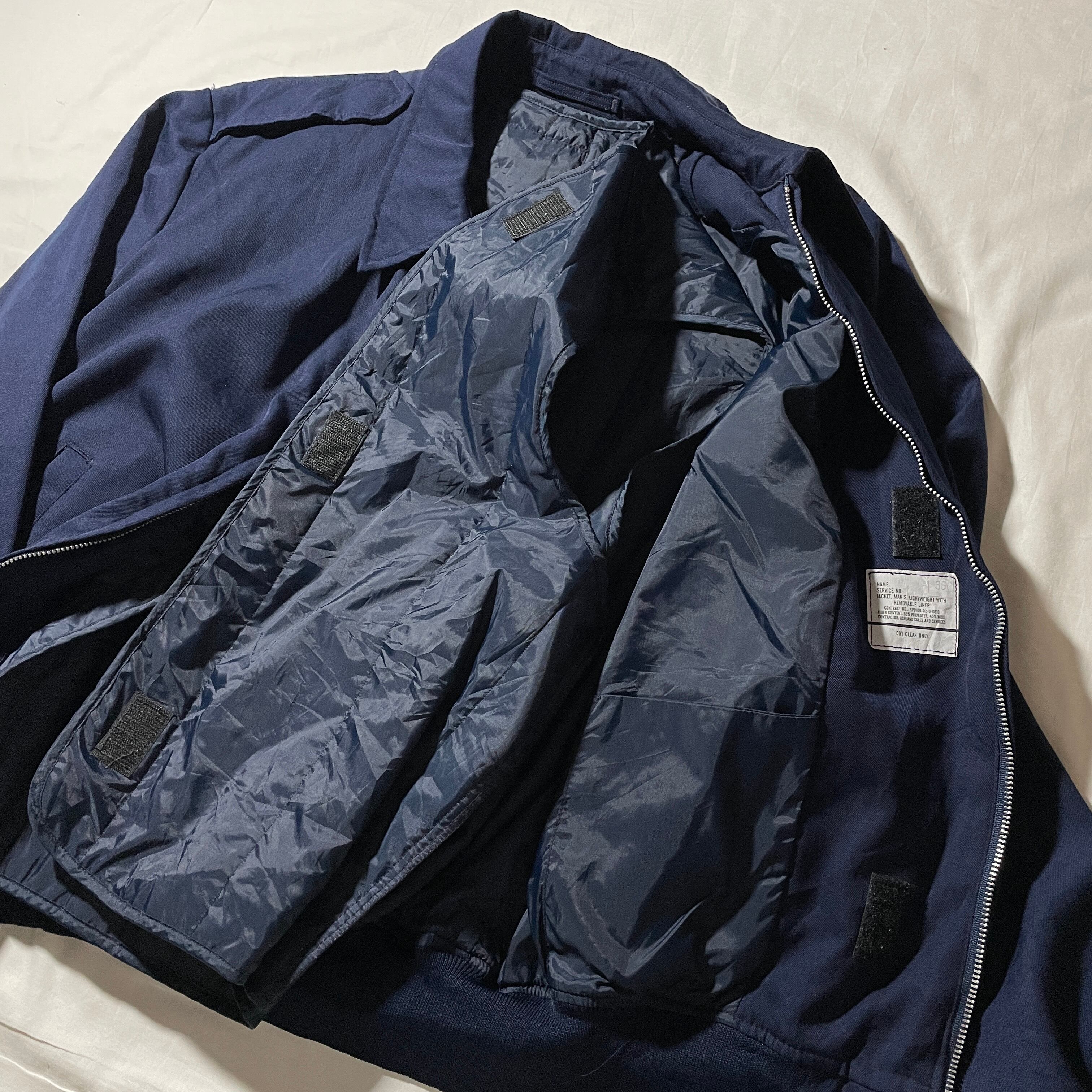 エアフォースブルーライクなネイビーカラーにシンプルな作りのジャケット。ライナーはベストタイプになっておりベルクロで着脱可能です。