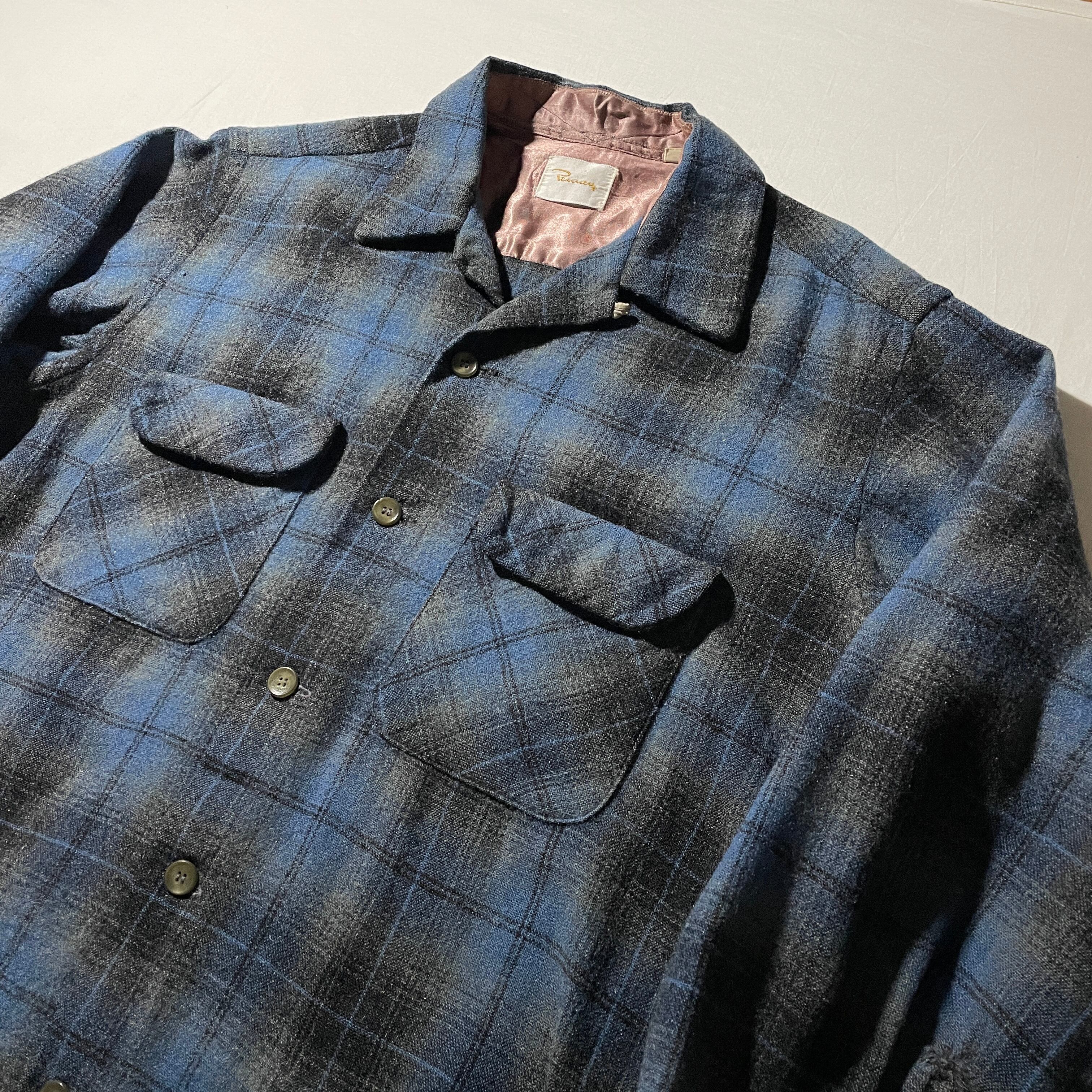 50s-60s Penny’s ウール オープンカラーシャツ オンブレチェック
