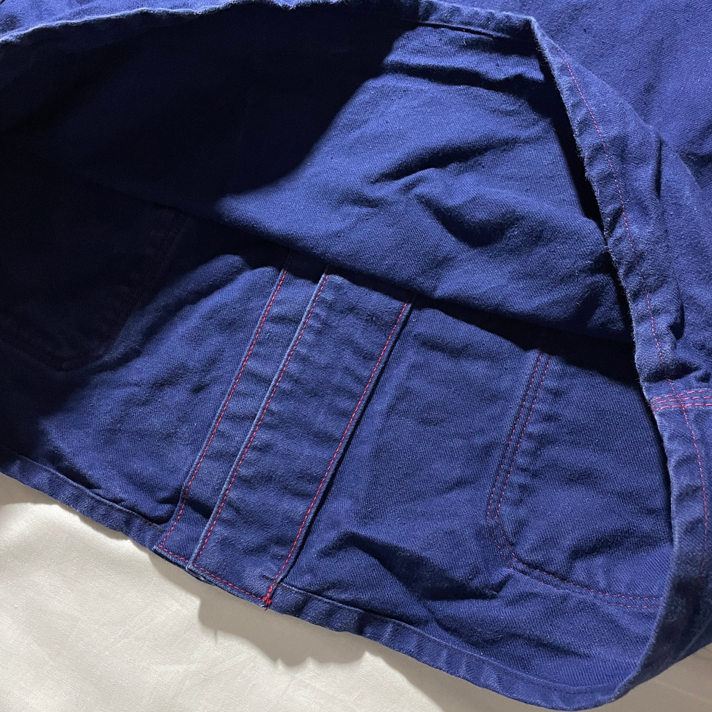 シンプルなデザインながらポケットに打たれたリベットやボタンの刻印など30s-40sあたりのワークウェアを彷彿とさせます。