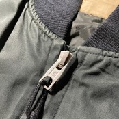 ブラックとオリーブグリーンを合わせた様な独特のカラーリング。袖口のジップや裾のリブ無しデザインでミリタリーアイテムながらスタイリッシュなら印象を受けます。