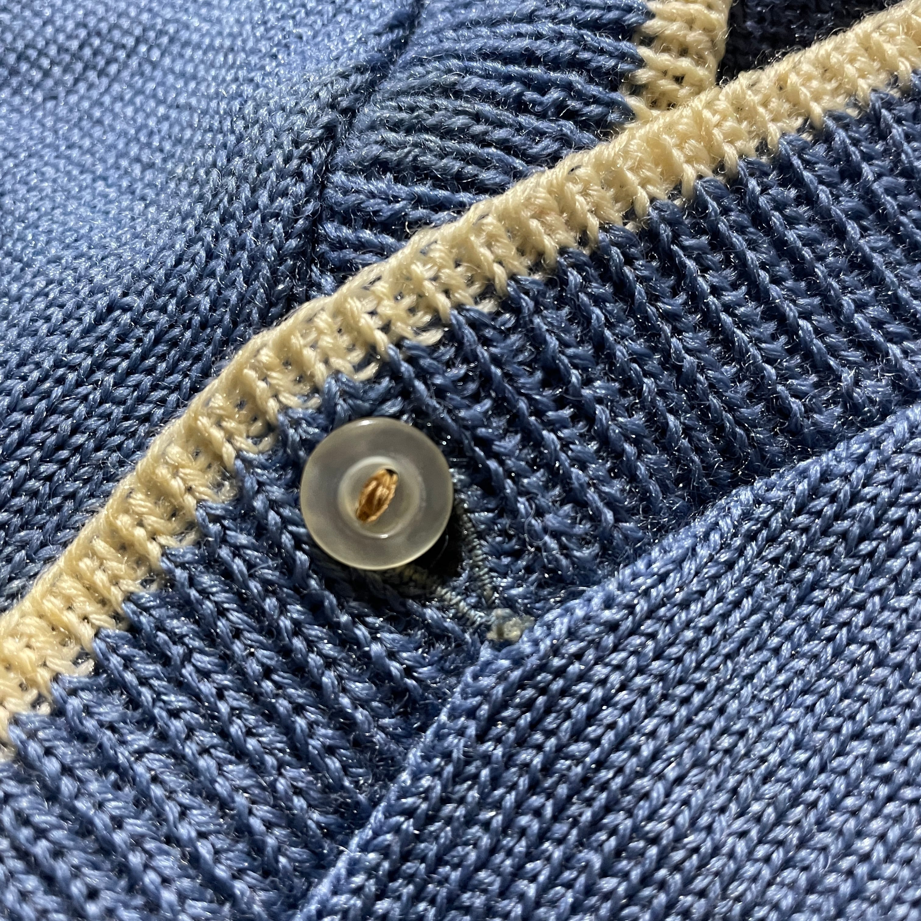 60s頃のヴィンテージカーディガン。胸元がざっくり開いたボタンの付き方が面白い一着です。