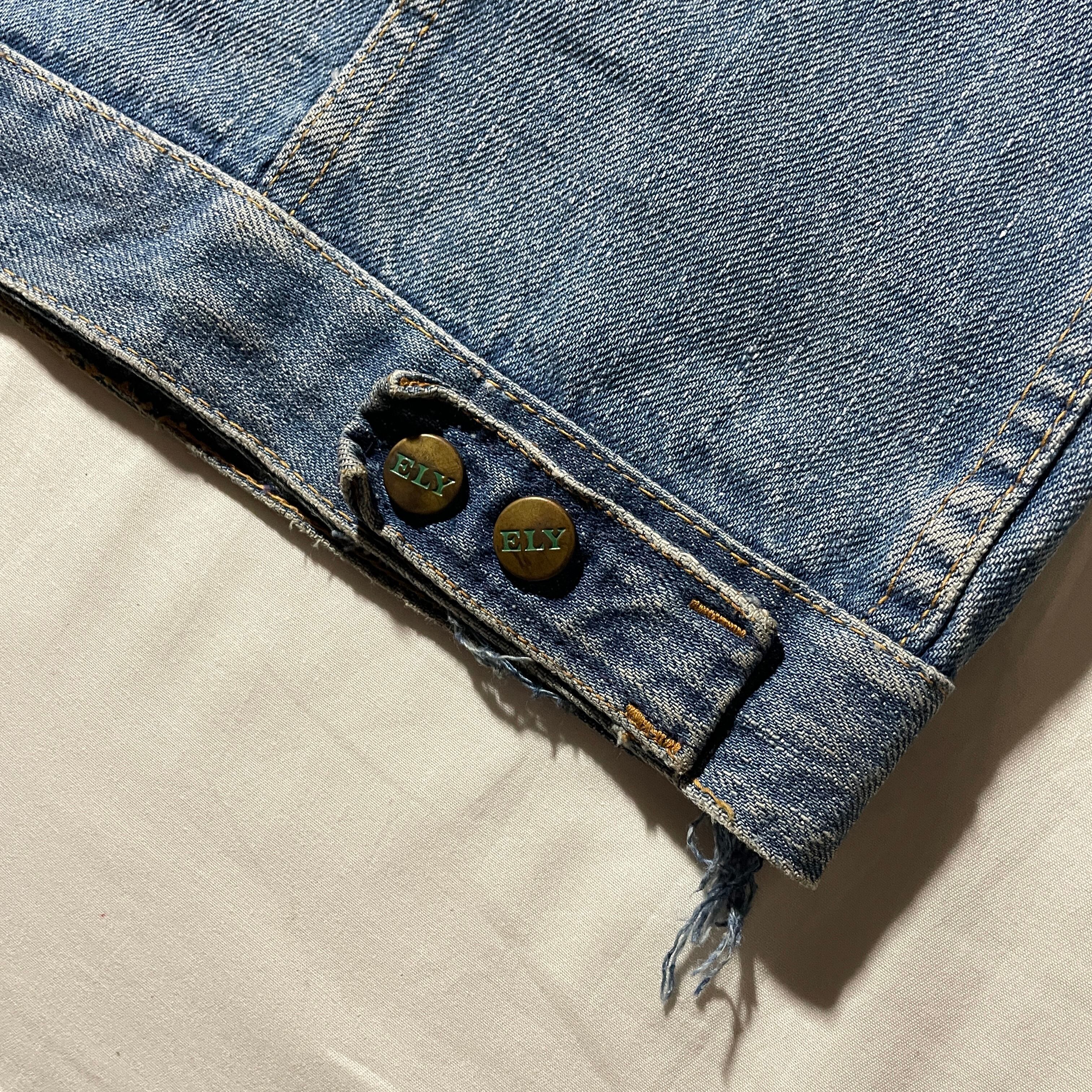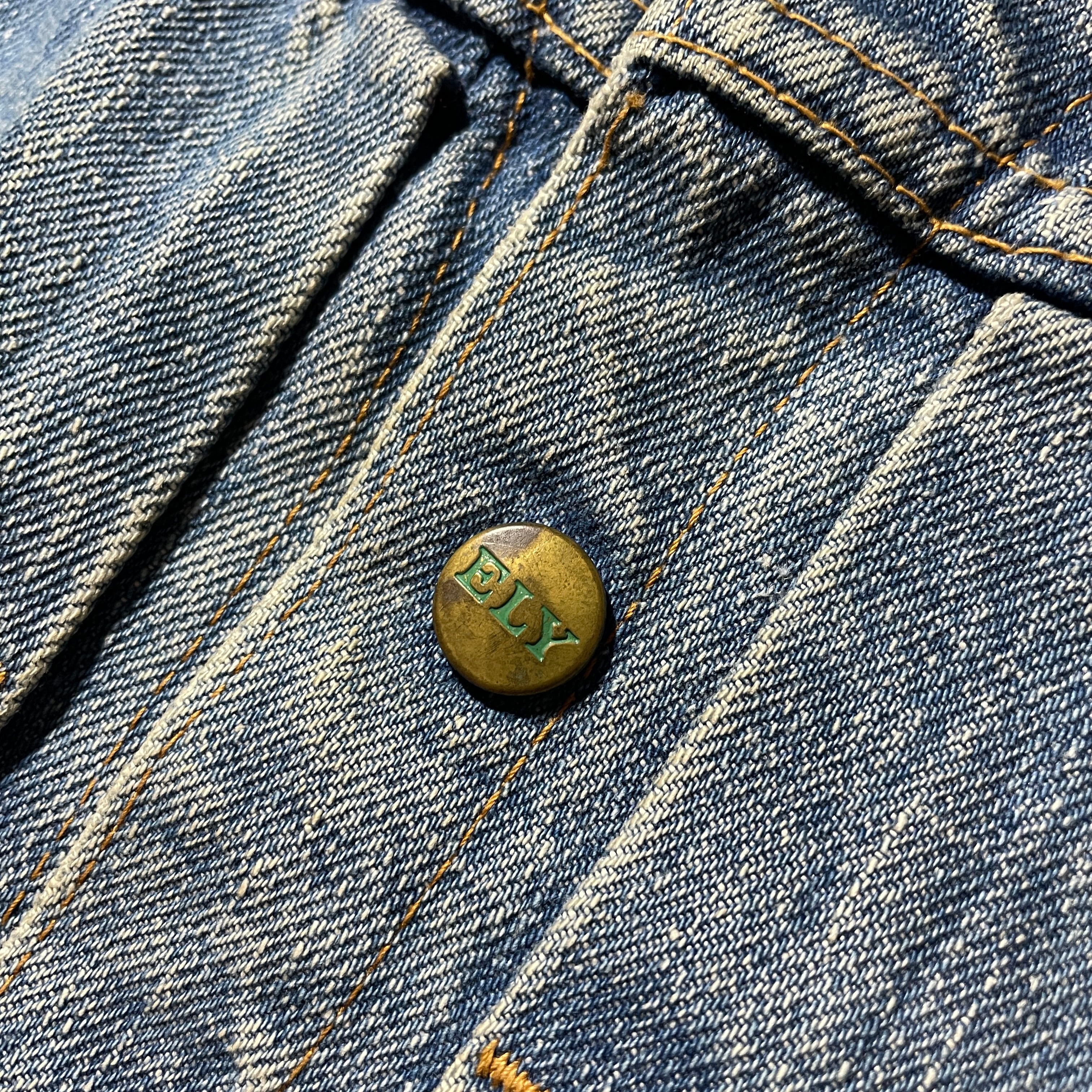 60s-70s初期頃のELY。2ndタイプのデニムジャケットの袖をカットしたモーターサイクルの雰囲気が漂う一着です。