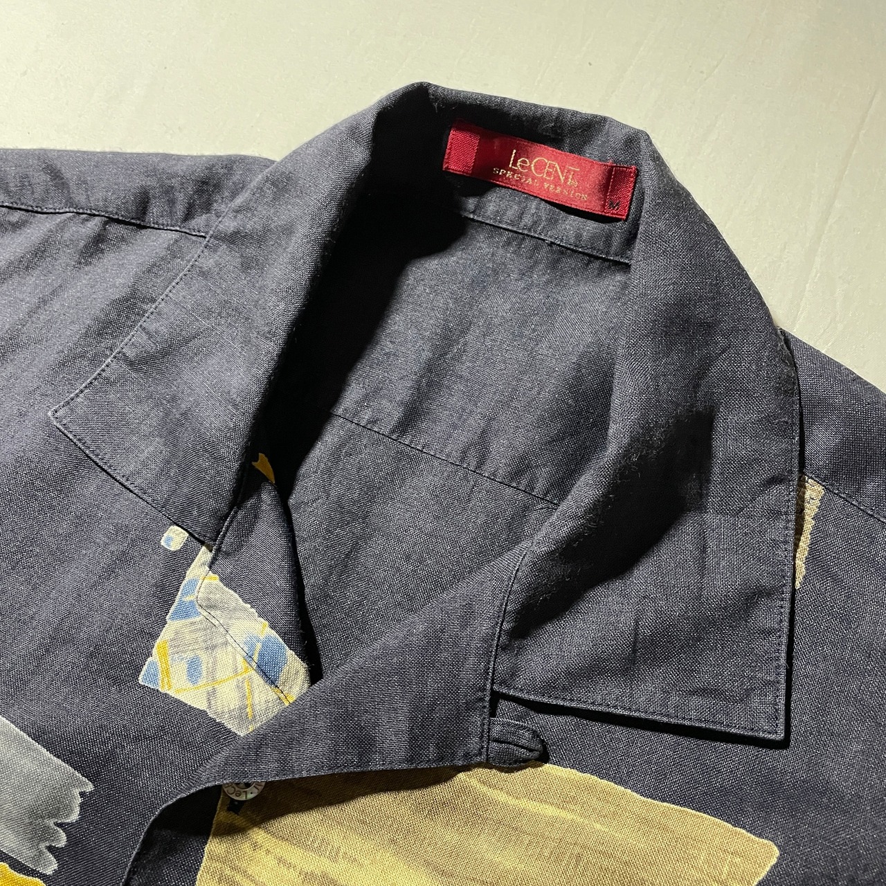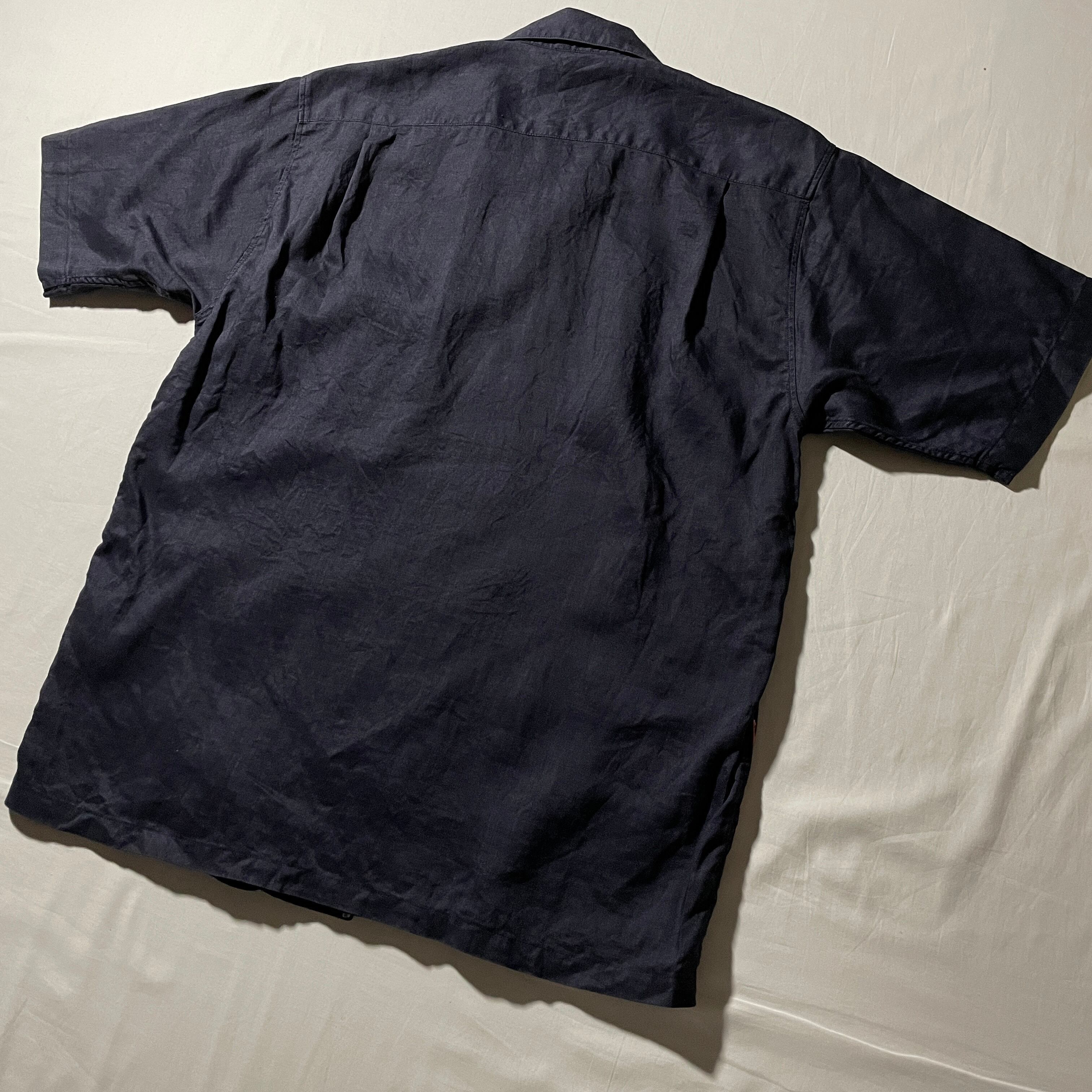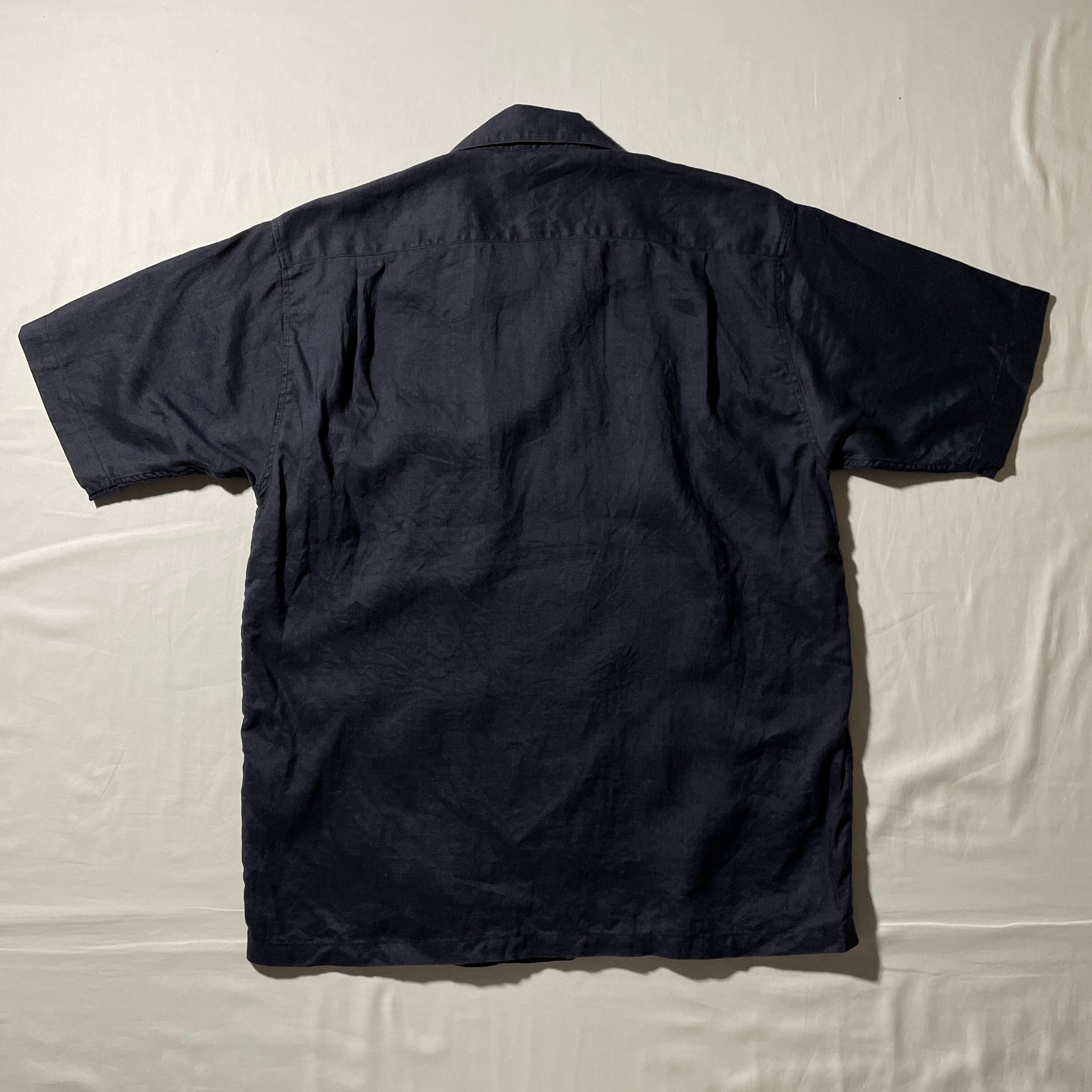 80s- LeCENT S/S オープンカラーシャツ リネン 昭和レトロ
