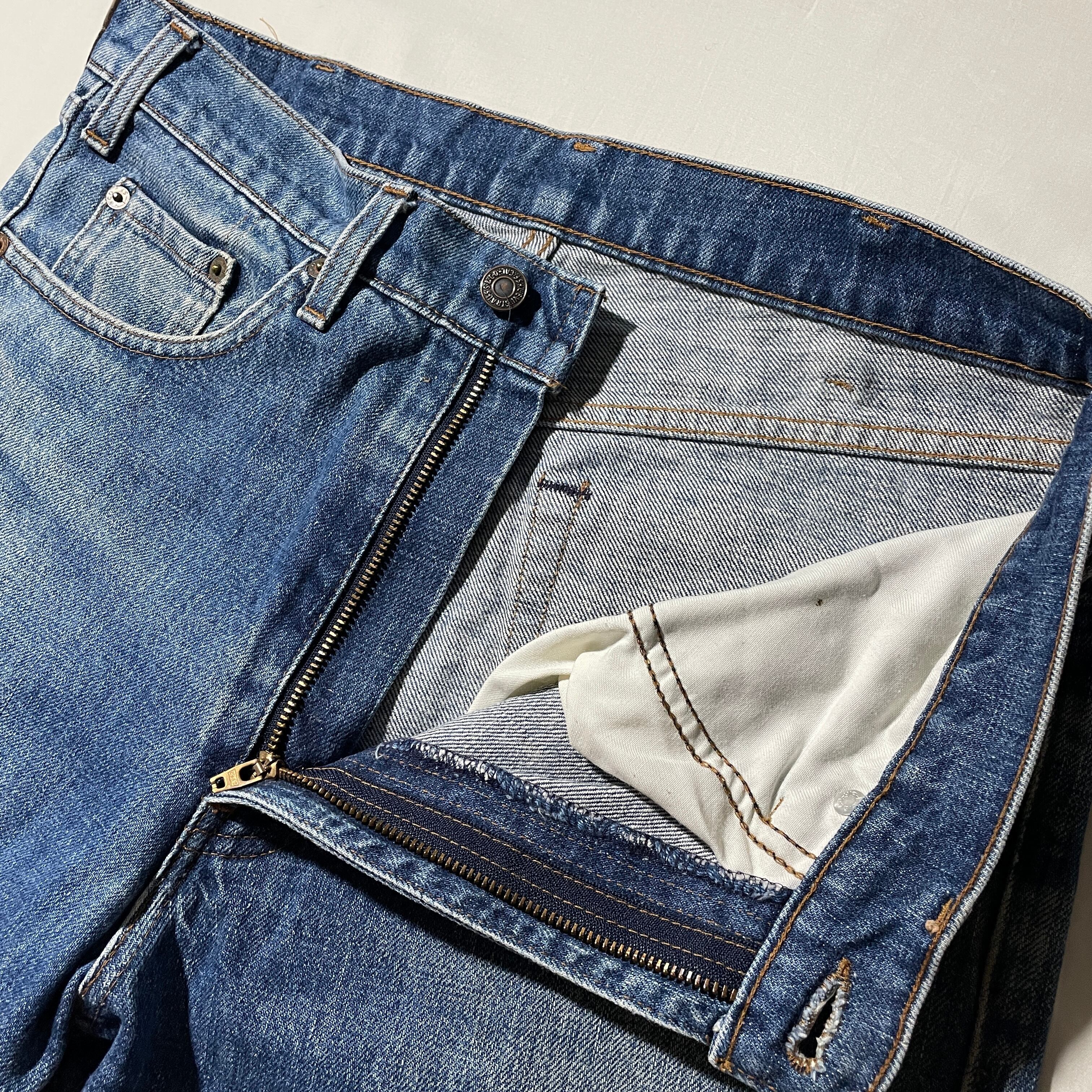 珍しい80sのリーバイス603。色落ちは70s頃の503のような綺麗な縦落ちが入ります。ジップはリーバイスジップ、黒カンヌキ仕様。
