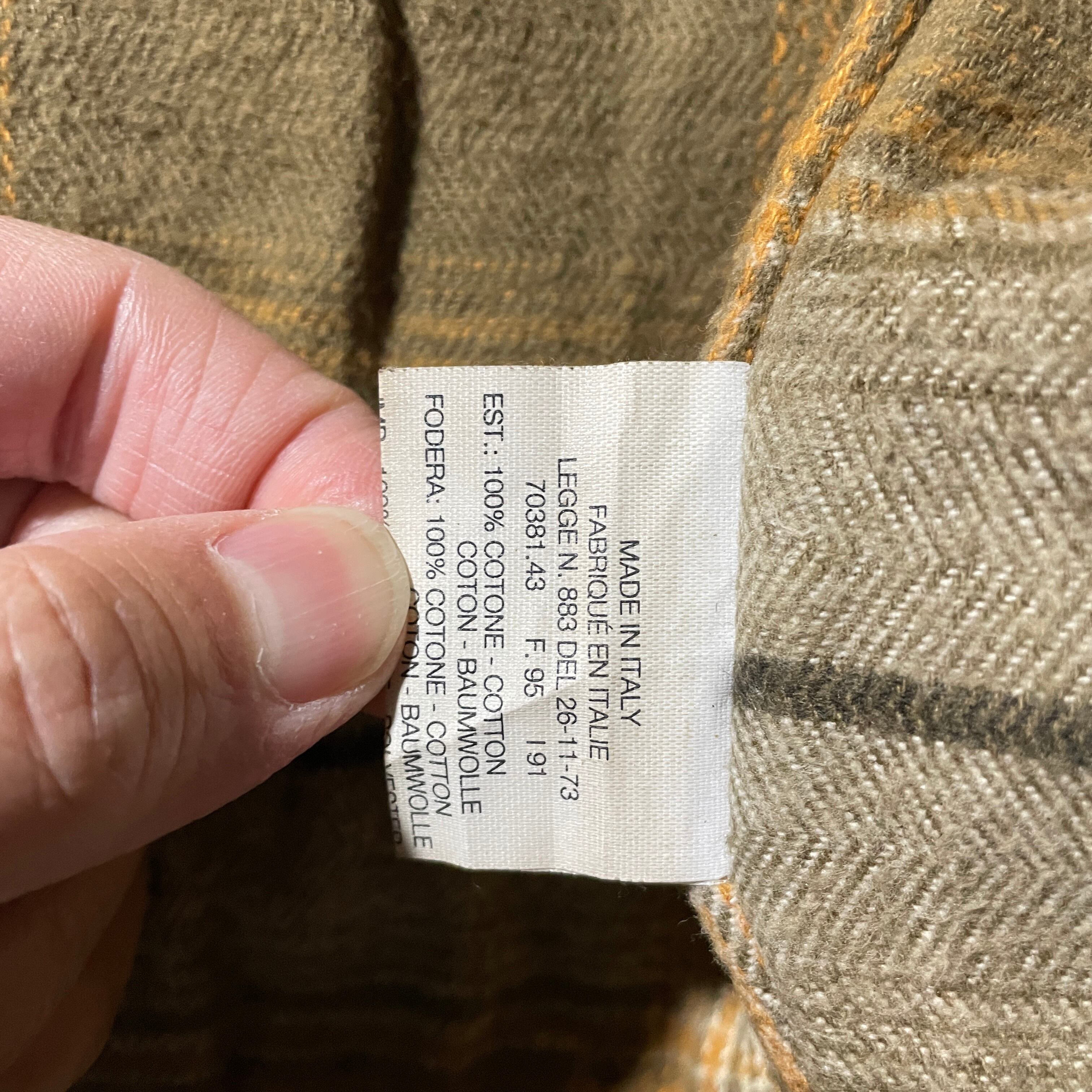 原産国はイタリア。インナーのライニングにシャドーチェックをもってくるあたりかなり粋です。
