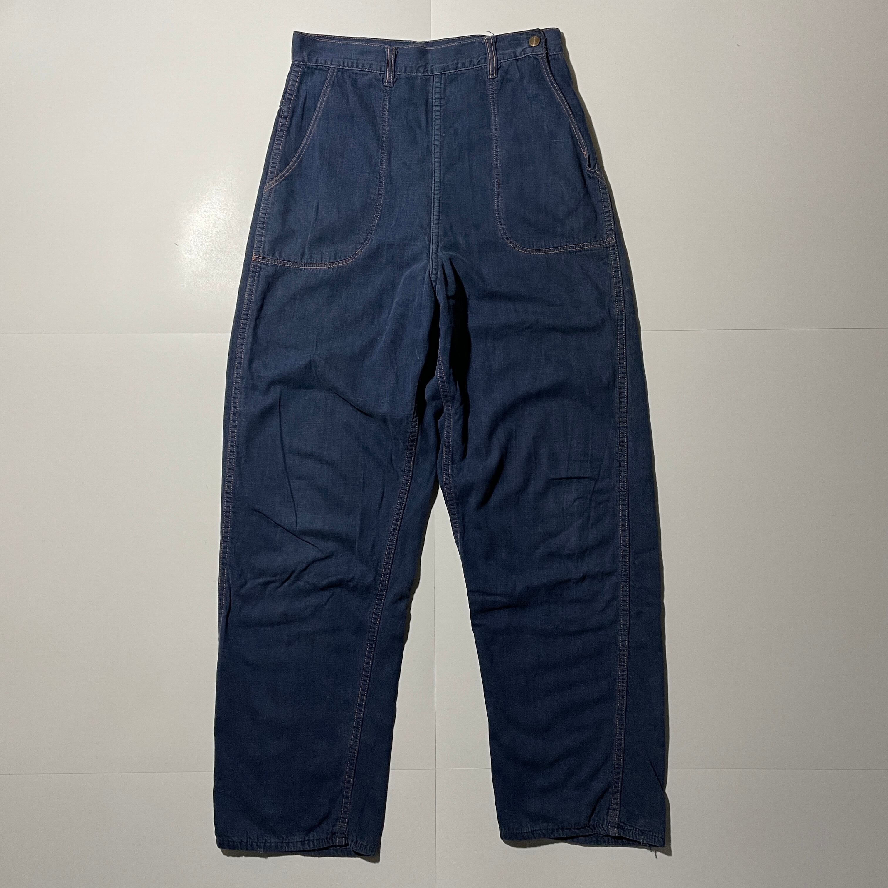 50s頃のランチパンツ。ブランドタグが欠損していますがスナップボタンやピンクのステッチングからストア系のアイテムかと思います。
