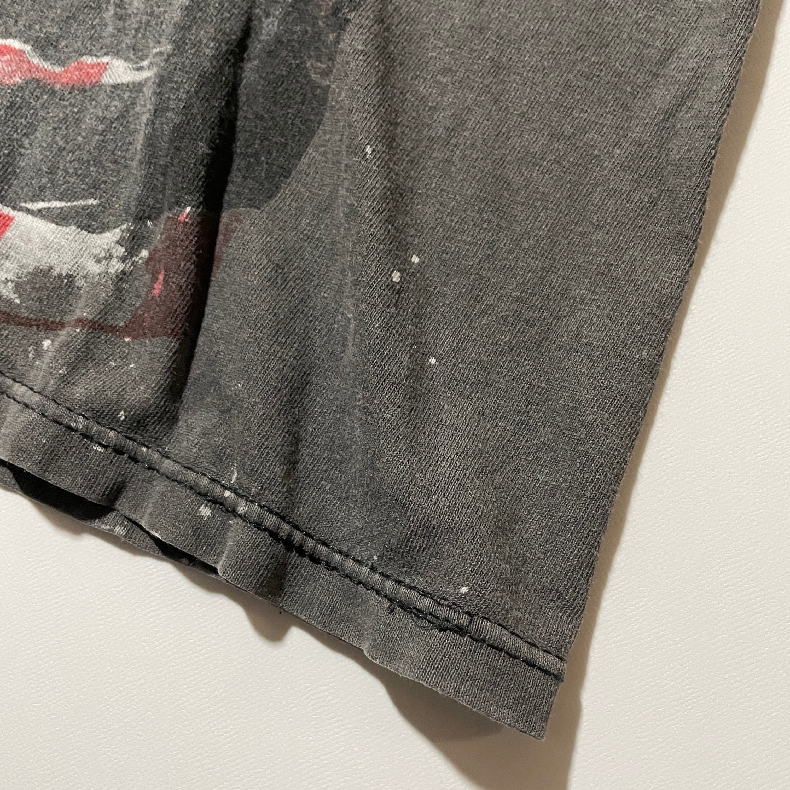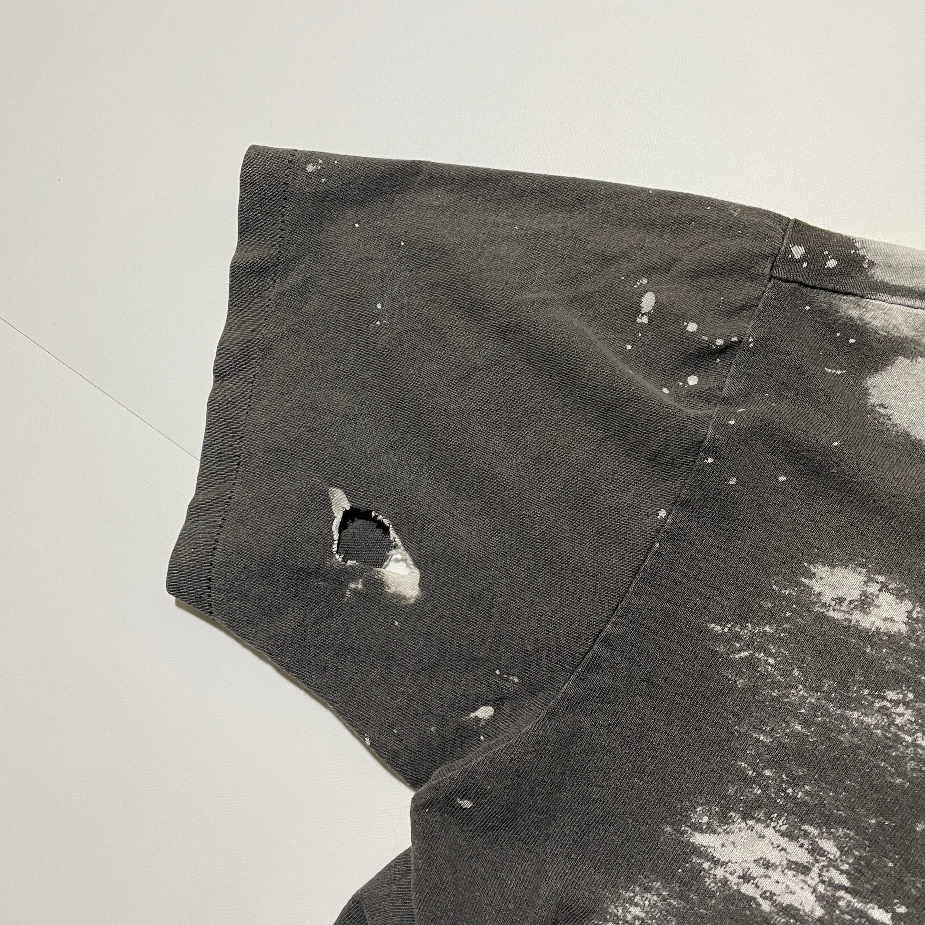 ブリーチされたボディに大判のシルクスクリーンを使い何重にも手作業で重ね刷りされたTシャツで映画から音楽まで数多くのアイテムが存在します。