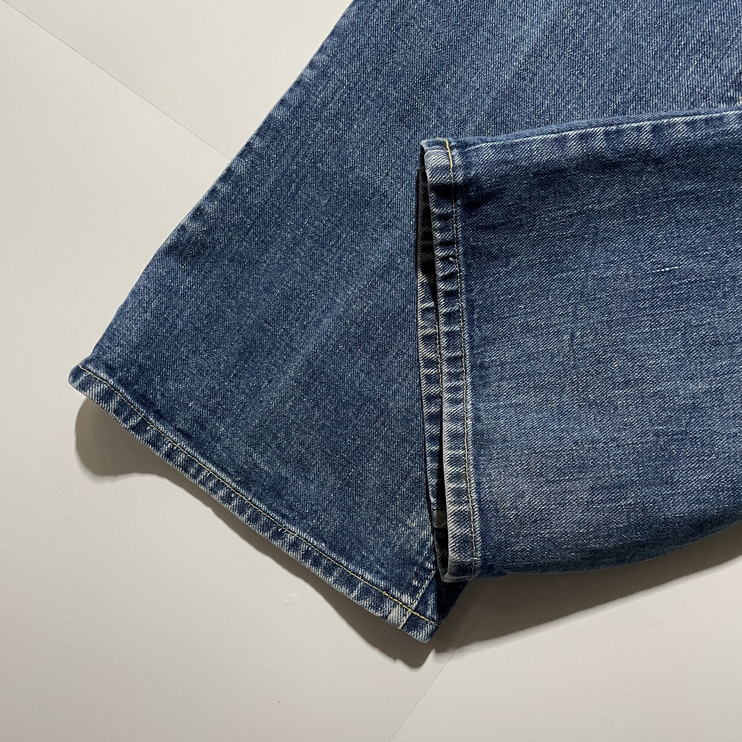 70s頃のLee riders 200のフレアデニム。色落ちの感じからサイド黒タグから変わった直後くらいのモデルかと思います。綺麗な縦落ちです。