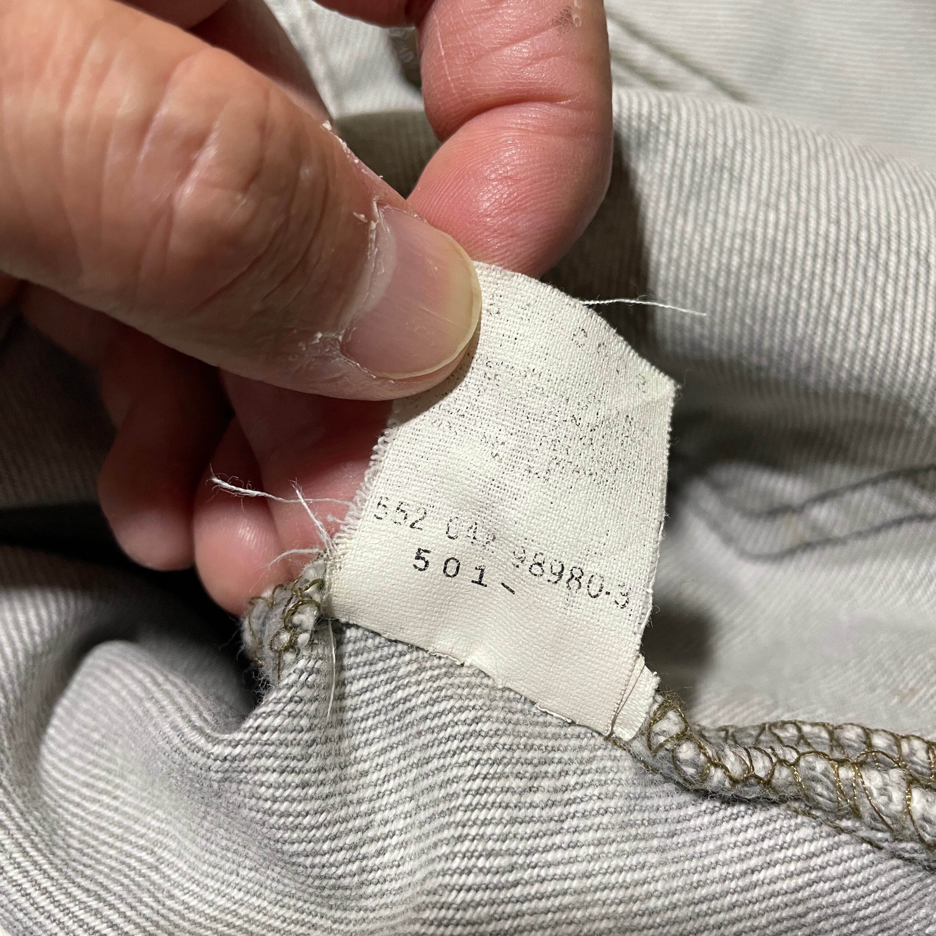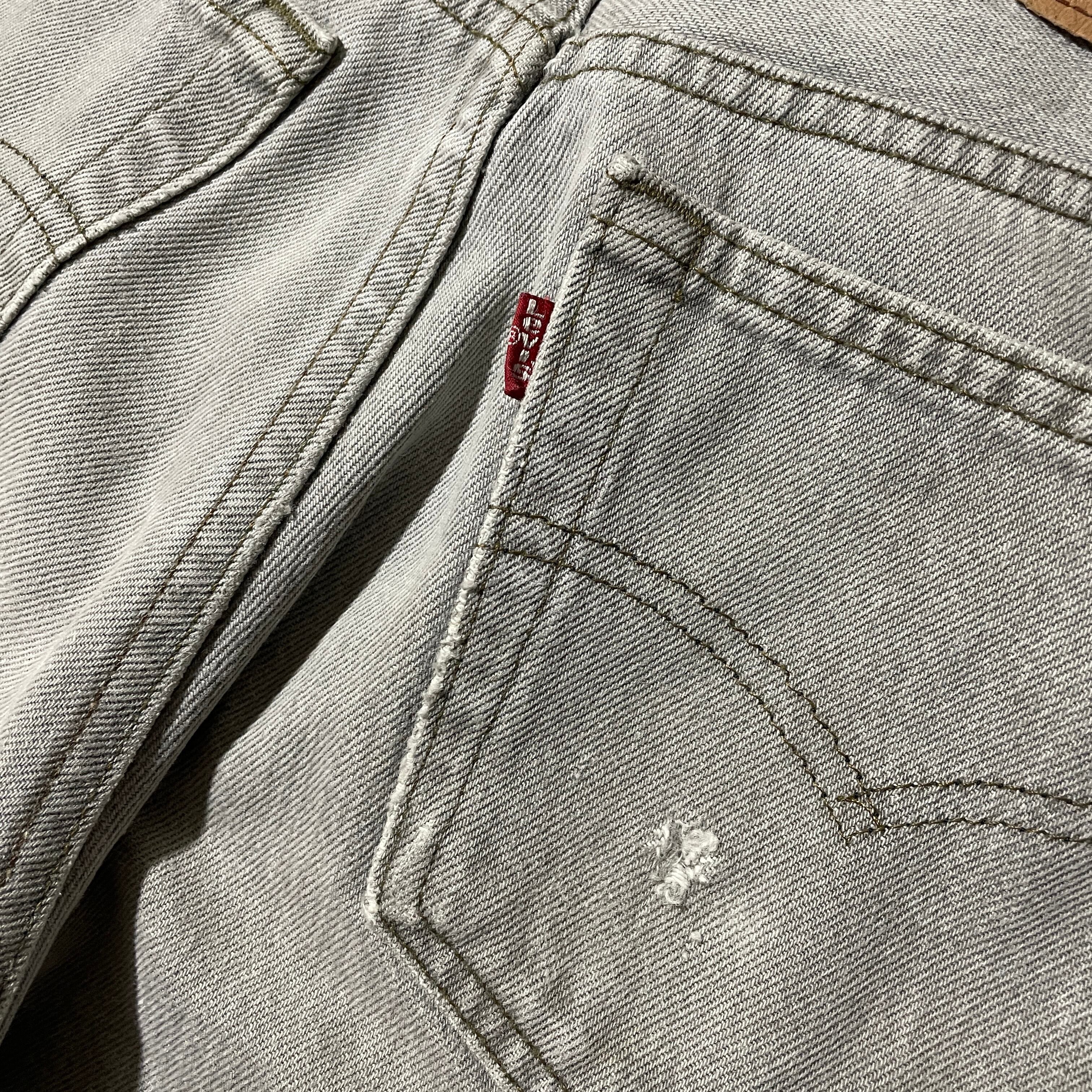 90s頃のLevi’s 501。元は先染めのブラックカラーモデルですが褪色極まってグレーになってます。