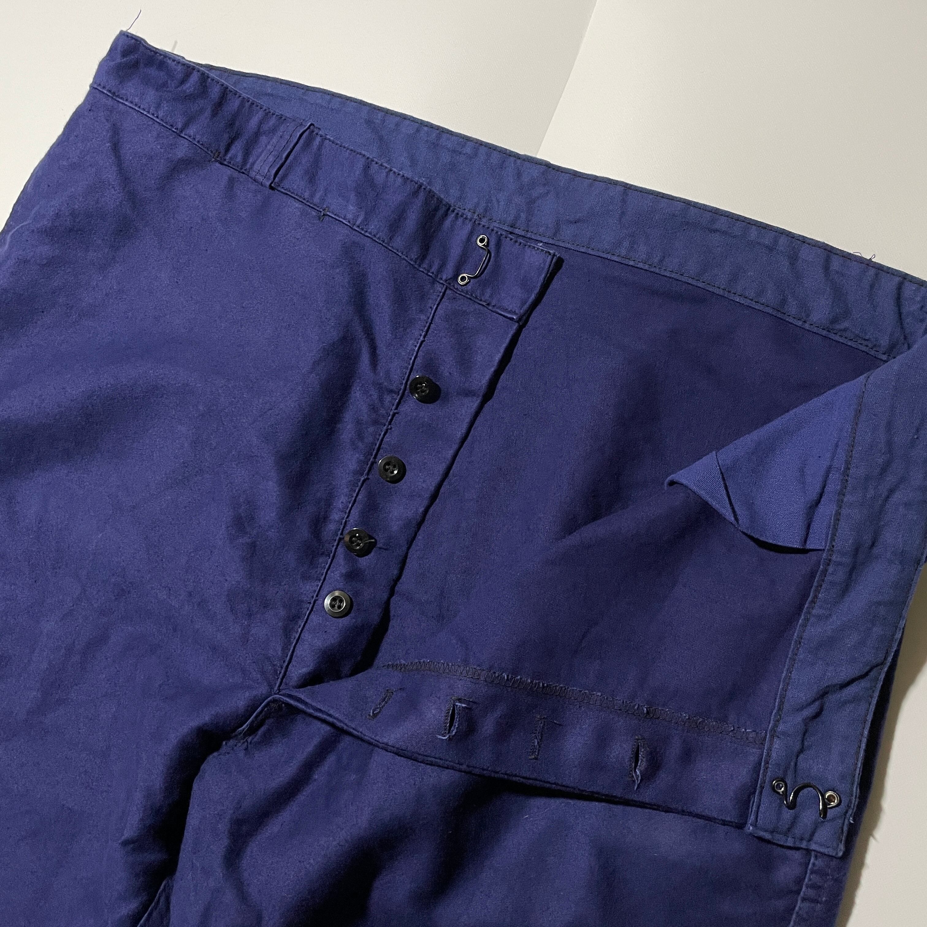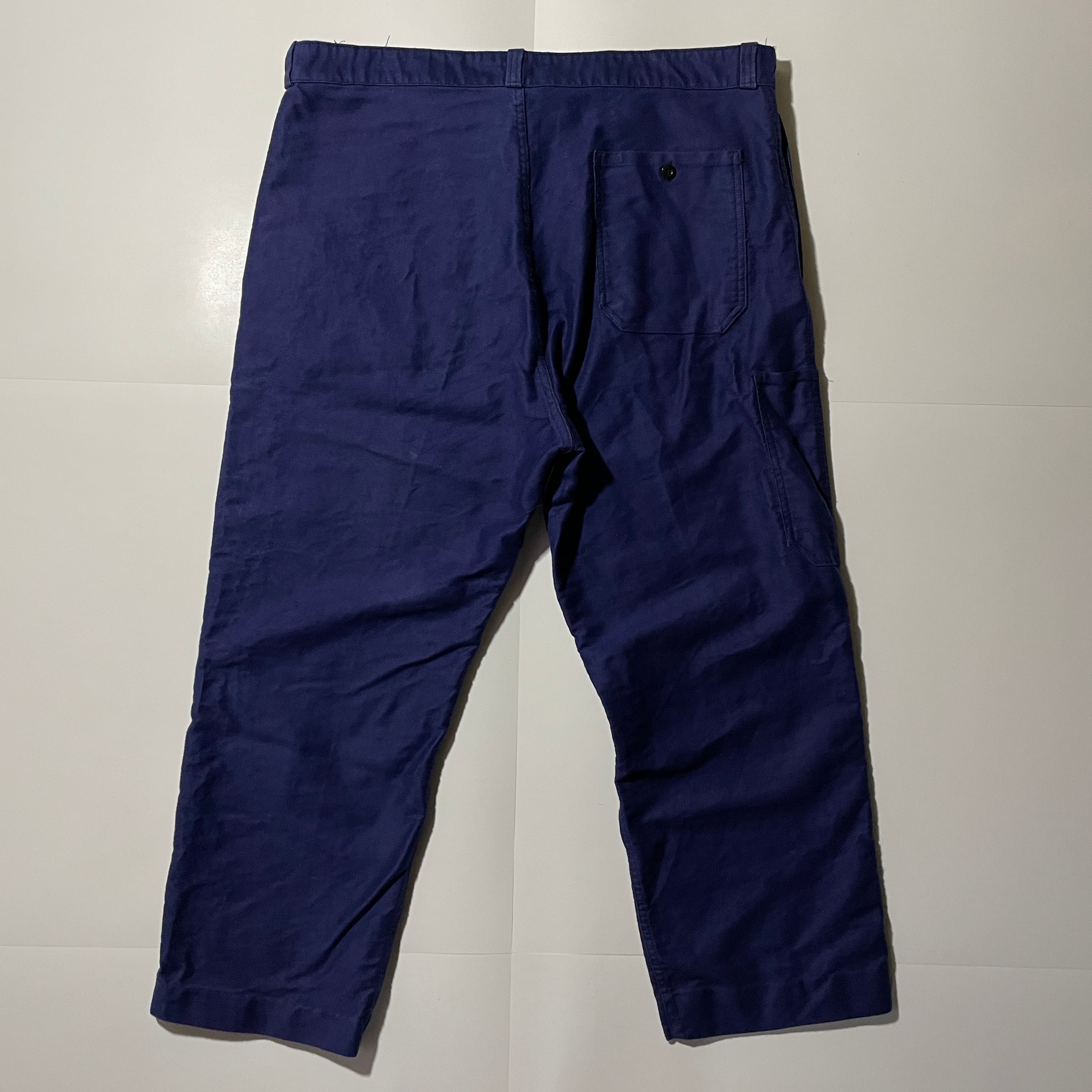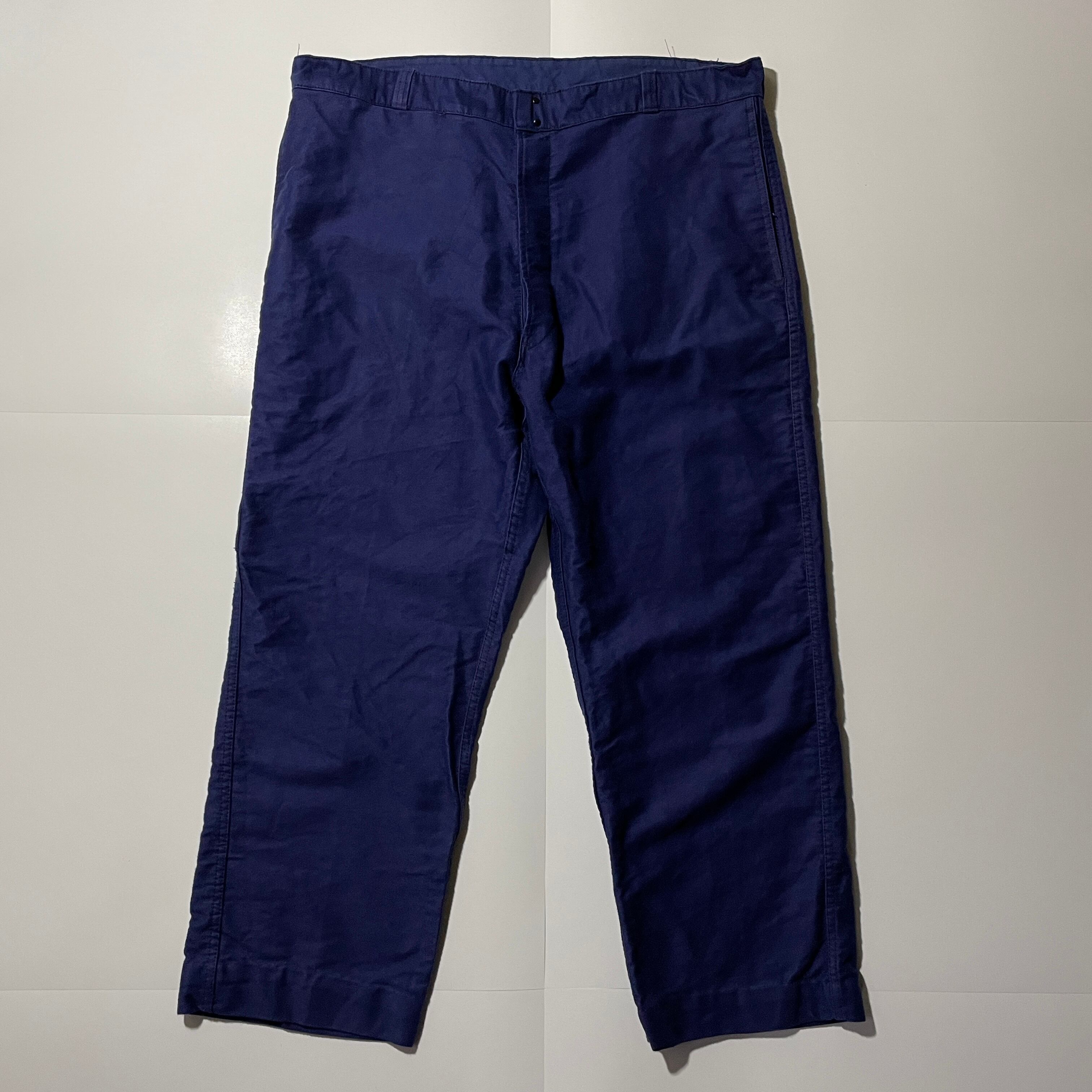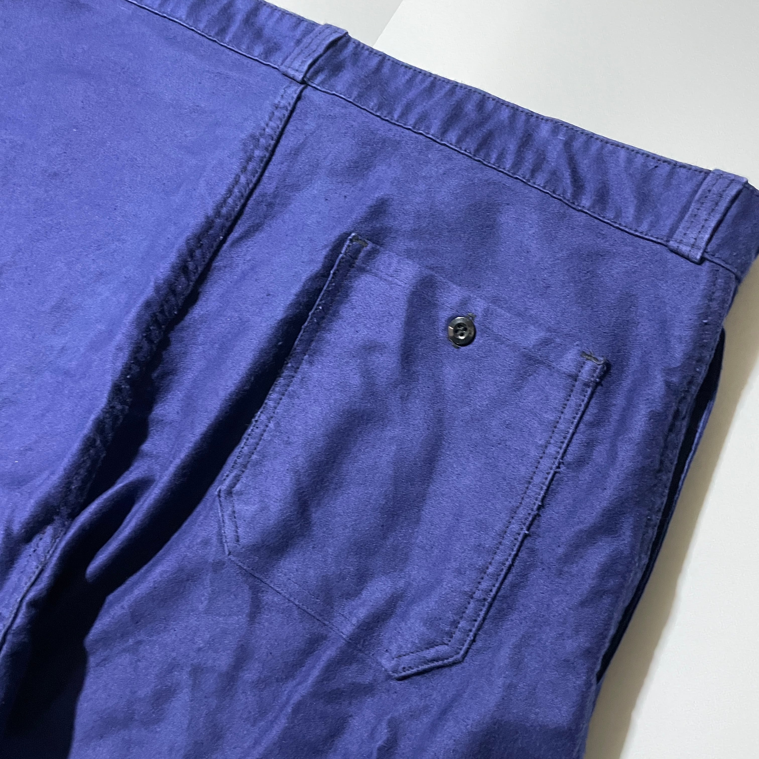 60s-70s頃のフレンチワークパンツ。毛羽立ちのある密度の高いコットンツイル、モールスキンを使用した当時のユーロワークパンツらしい1着です。