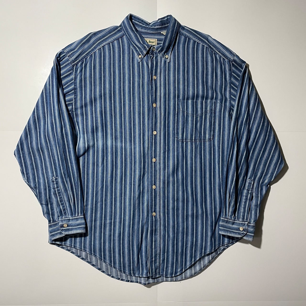 90s L.L.BEAN ストライプデニム BDシャツ ヴィンテージ USA製