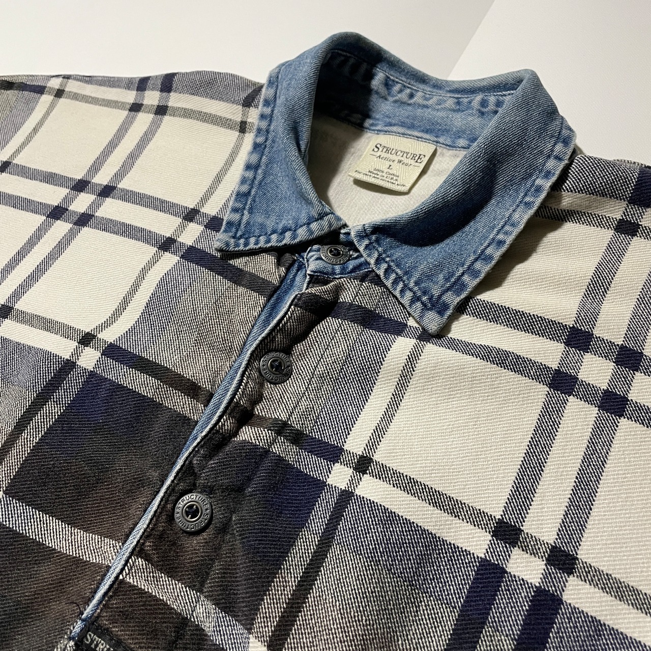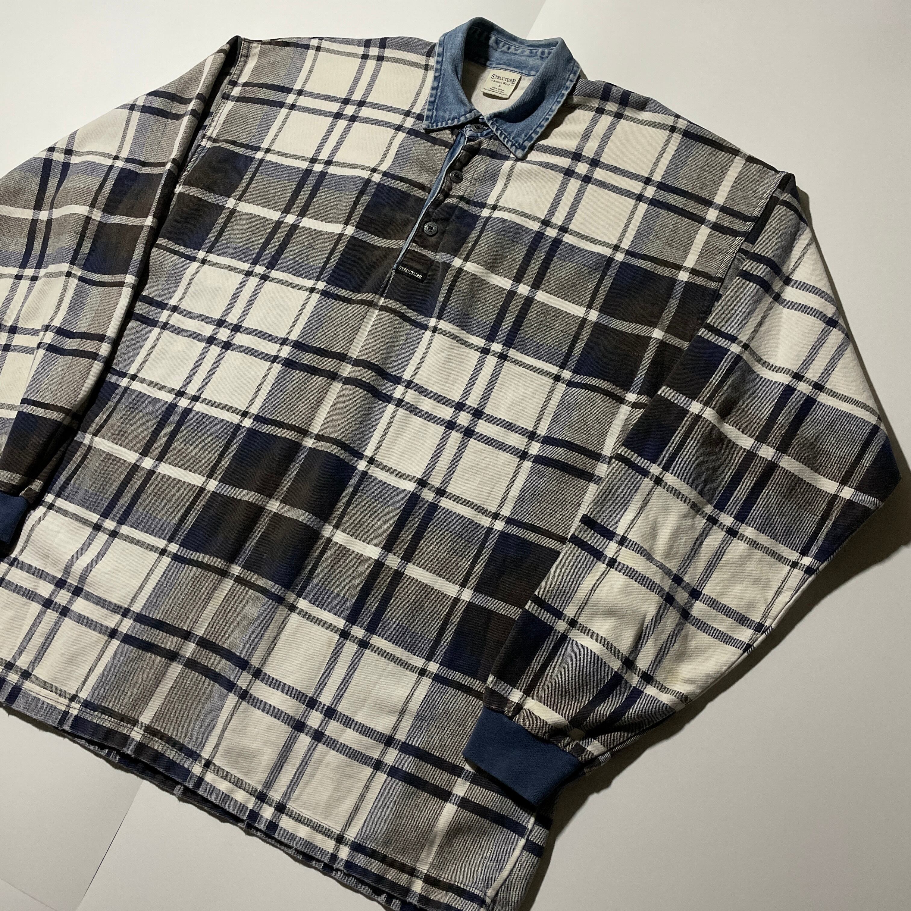 90s STRUCTURE L/S ポロシャツ チェック ヴィンテージ USA製